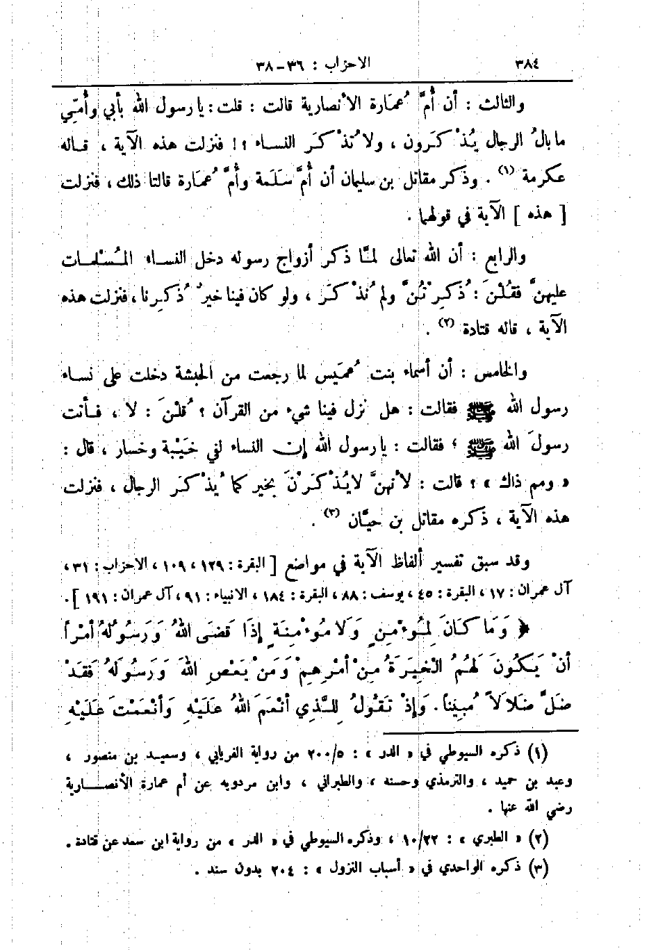 والثالث أن أم عمارة الأنصارية قالت قلت يارسول الله بأبي وأمي ما بال الرجال يذكرون ولا تذكر النساء فنزلت هذه الآية قاله عكرمة وذكر مقاتل بن سليمان أن أم سلمة وأم عمارة قالتا ذلك فنزلت هذه الآية في قولهما