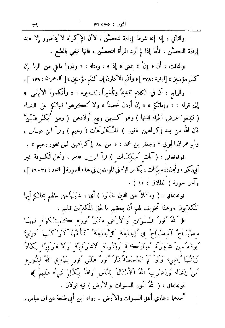 قوله تعالى الله نور السماوات والأرض فيه قولان