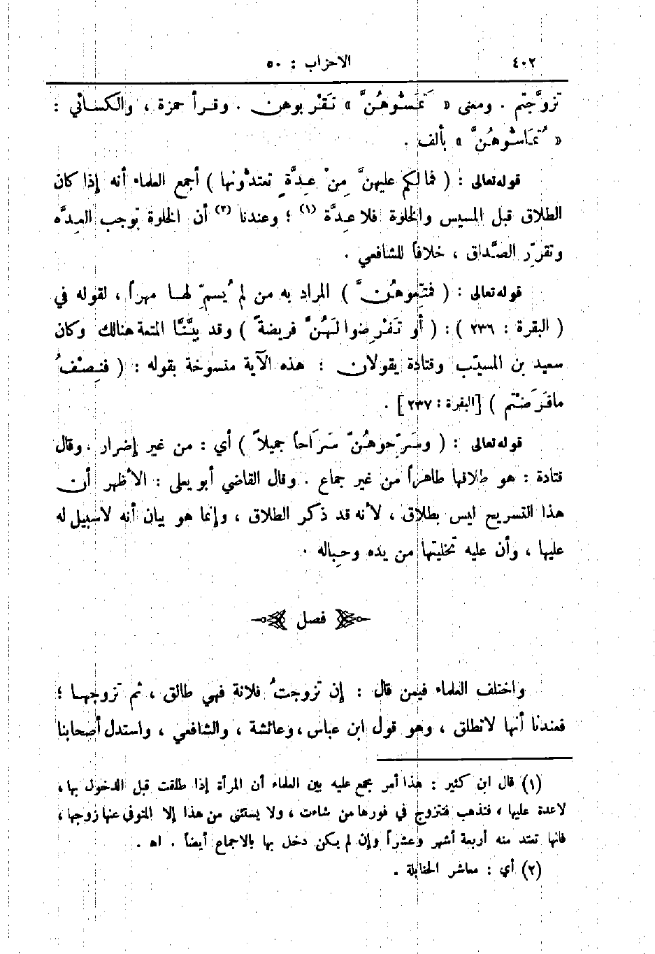 قوله تعالى وسرحوهن سراحا جميلا أي من غير إضرار وقال قتادة هو طلاقها طاهرا من غير جماع وقال القاضي أبو يعلي الأظهر أن هذا التسريح ليس بطلاق لانه قد ذكر الطلاق وإنما هو بيان أنه لا سبيل له عليها وأن عليه تخليتها من يده وحباله فصل