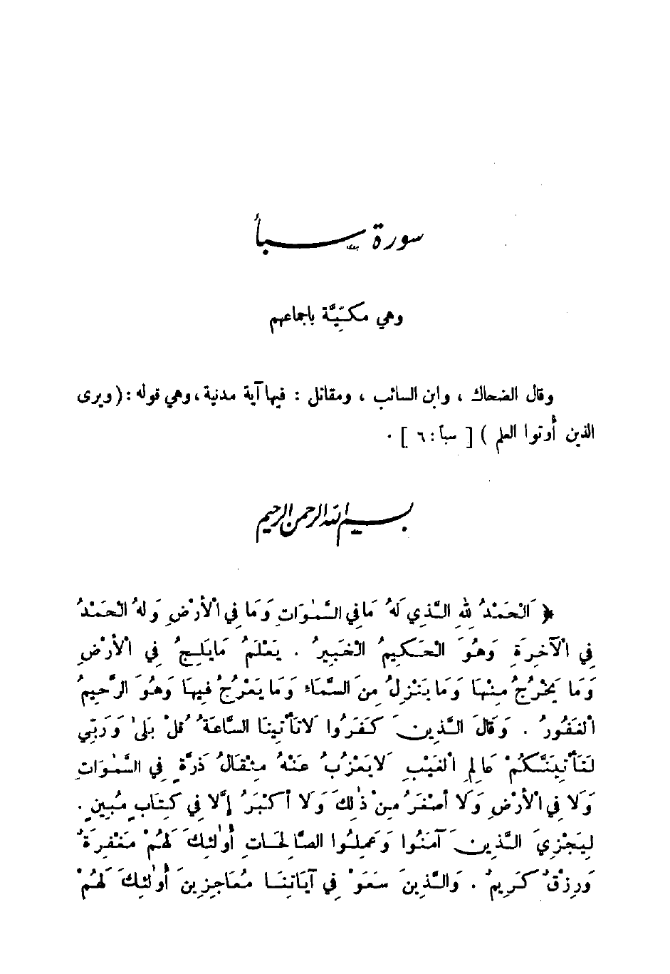 الحمد لله الذي له ما في السماوات وما في الارض وله الحمد في الآخرة وهو الحكيم الخبير يعلم ما يلج في الأرض وما يخرج منها وما ينزل من السماء وما يعرج فيها وهو الرحيم الغفور وقال الذين كفروا لاتأتينا الساعة قل بلى وربي لتأتينكم عالم الغيب لا يعزب عنه مثقال ذرة في السماوات ولا في الأرض ولا أصغر من ذلك ولا اكبر إلا في كتاب مبين ليجزي الذين آمنوا وعملوا الصالحات أولئك لهم مغفرة ورزق كريم والذين سعوا في آياتنا معاجزين أولئك لهم