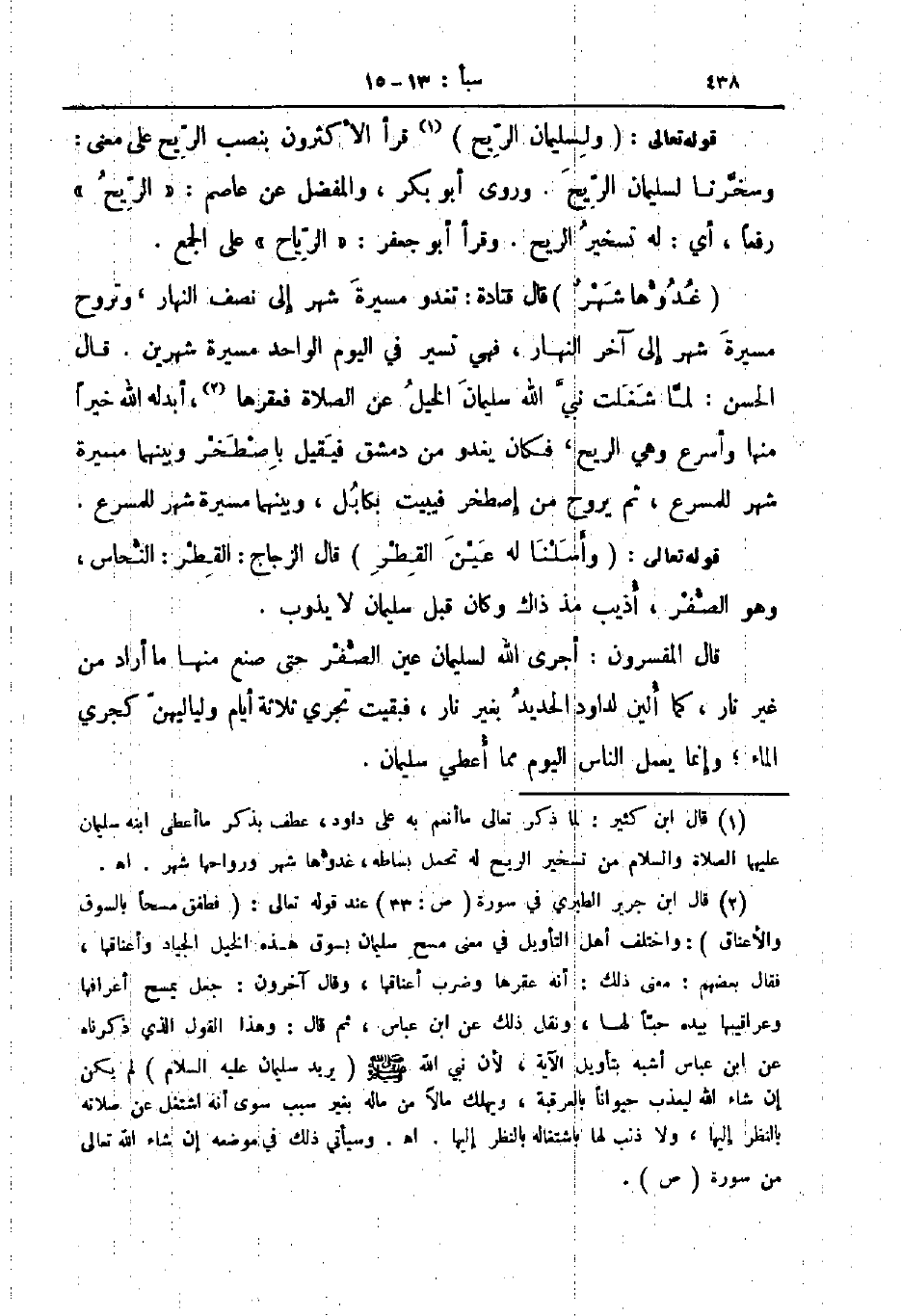 قال المفسرون أجرى الله لسليمان عين الصفر حتى صنع منها ما أراد من غير نار كما الين لداود الحديد بغير نار فبقيت تجري ثلاثة أيام ولياليهن كجري الماء وإنما يعمل الناس اليوم مما اعطي سليمان