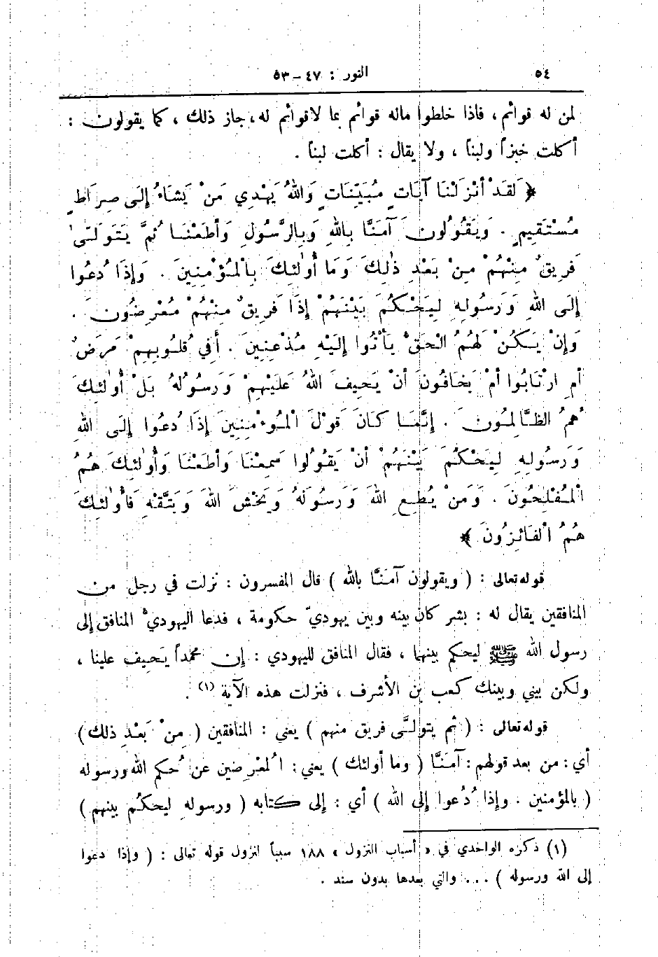 قوله تعالى ويقولون آمنا بالله قال المفسرون نزلت في رجل من المنافقين يقال له بشر كان بينه وبين حكومة يهودي فدعا اليهودي المنافق إلى رسول الله ص ليحكم بينهما فقال المنافق لليهودي إن محمدا يحيف علينا ولكن بيني وبينك كعب بن الأشرف فنزلت هذه الآية