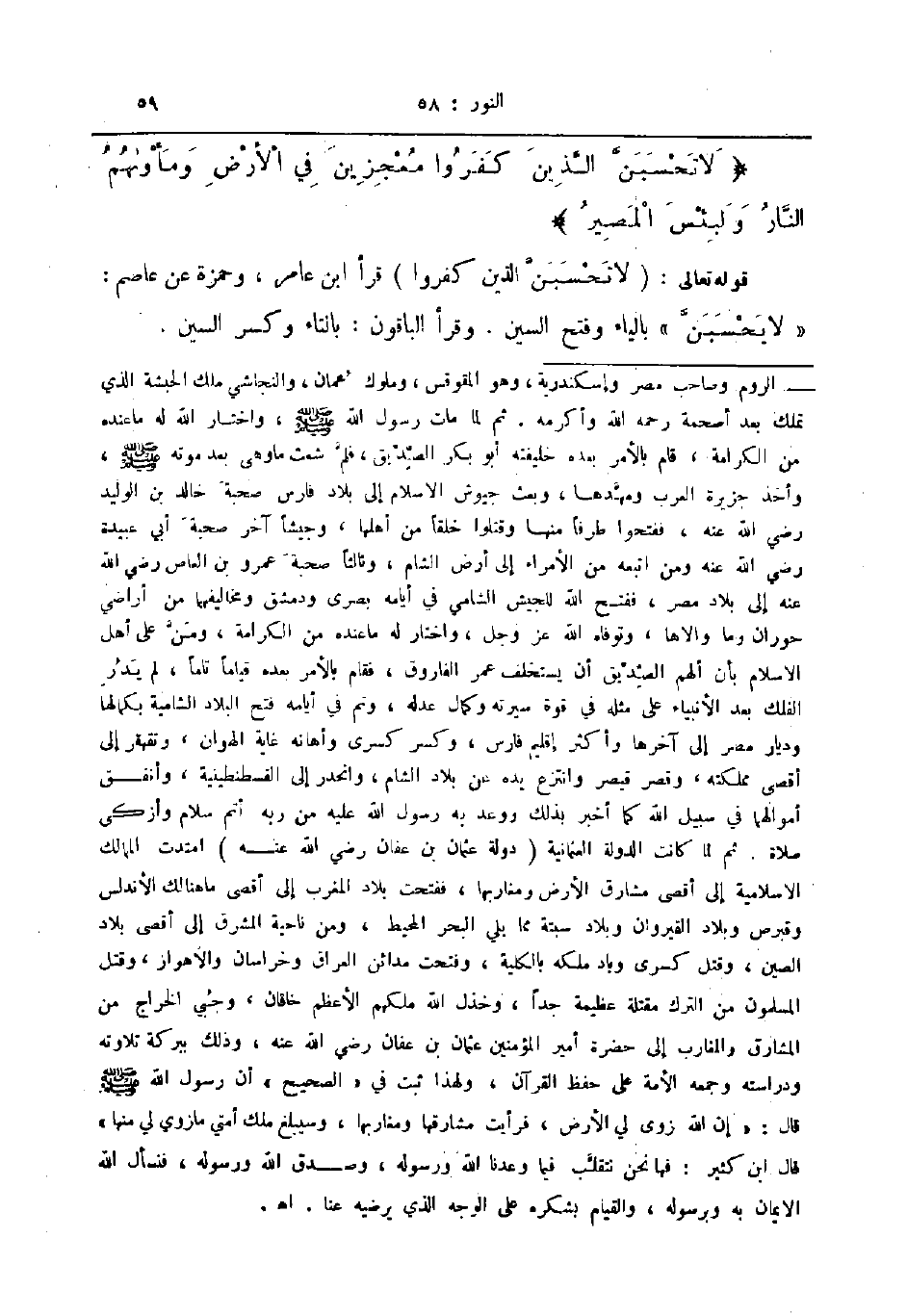 لا تحسبن الذين كفروا معجزين في الارض ومأواهم النار ولبئس المصير
