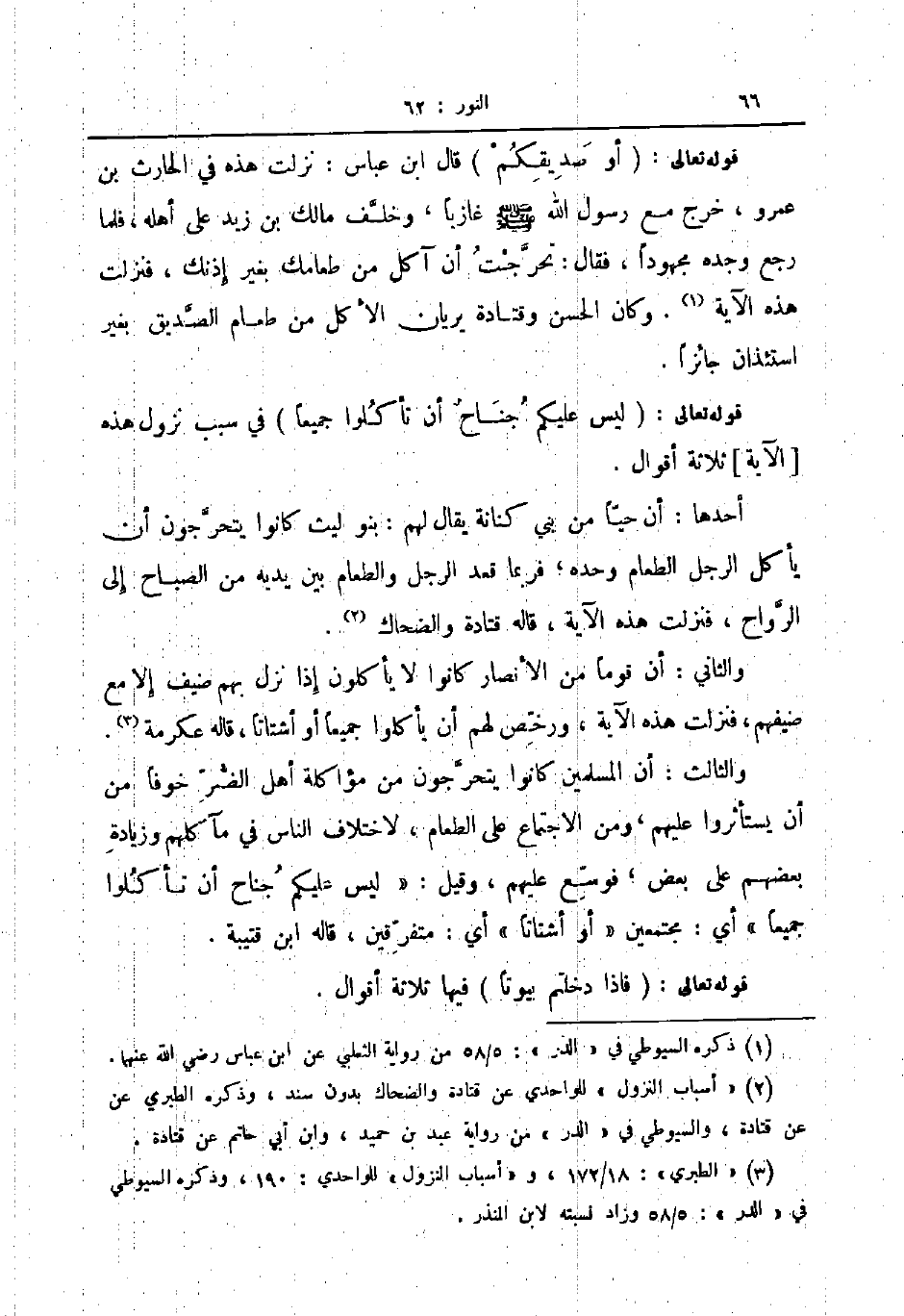 والثالث أن المسلمين كانوا يتحرجون من مؤاكلة اهل الضر خوفا من أن يستأثروا عليهم ومن الاجتماع على الطعام لاختلاف الناس في مأكلهم وزيادة بعضهم على بعض فوسع عليهم وقيل ليس عليكم جناح أن تأكلوا جميعا أي مجتمعين أو أشتاتا أي متفرقين قاله ابن قتيبة