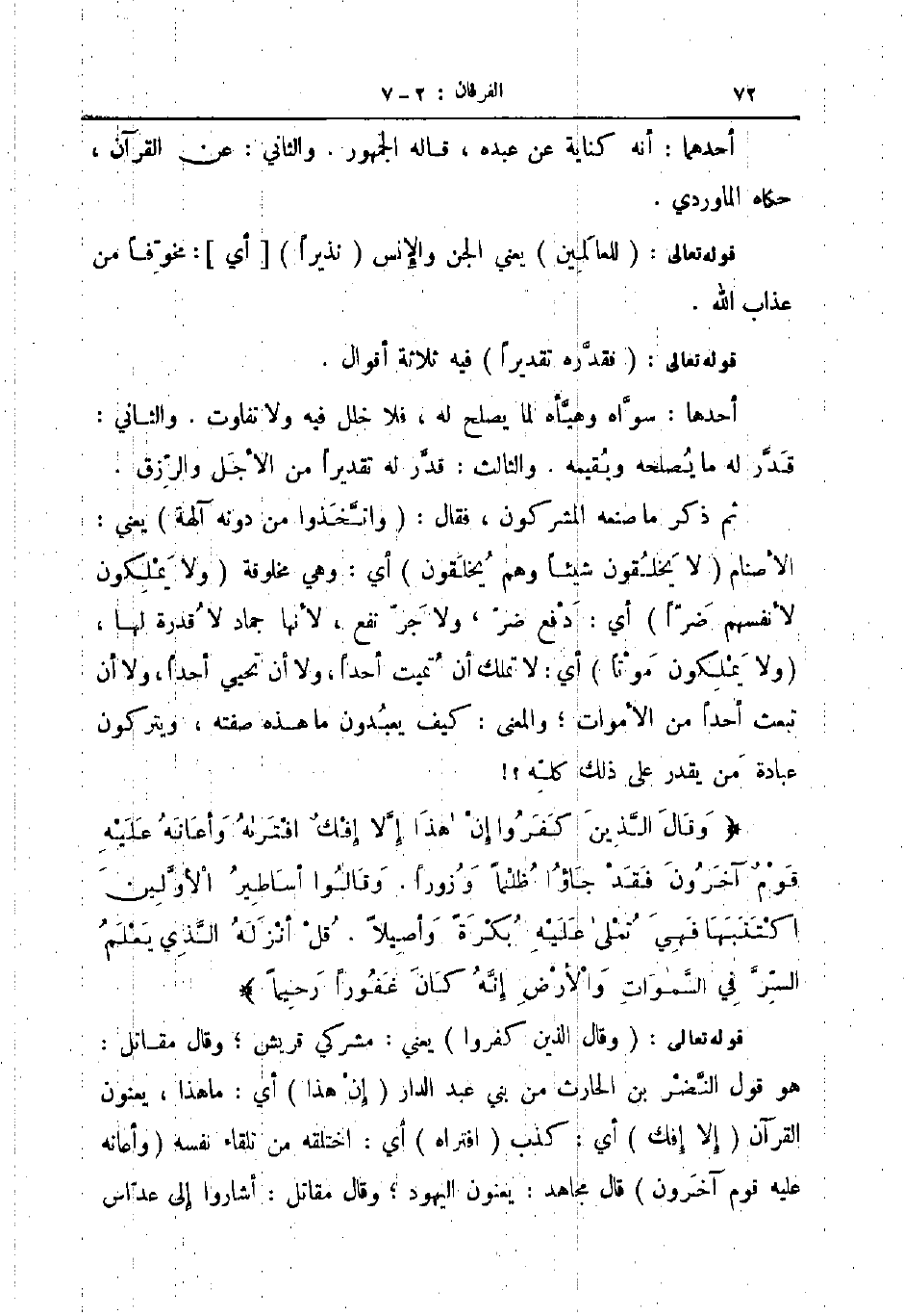 قوله تعالى للعالمين يعني الجن والإنس نذيرا أي مخوفا من عذاب الله