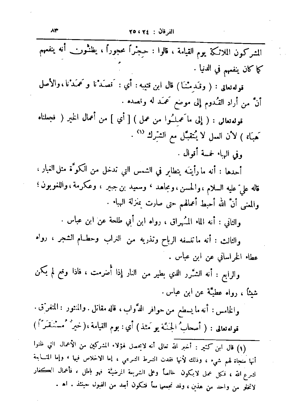 المشركون الملائكة يوم القيامة قالوا حجرا محجورا يظنون أنه ينفعهم كما كان ينفعهم في الدنيا
