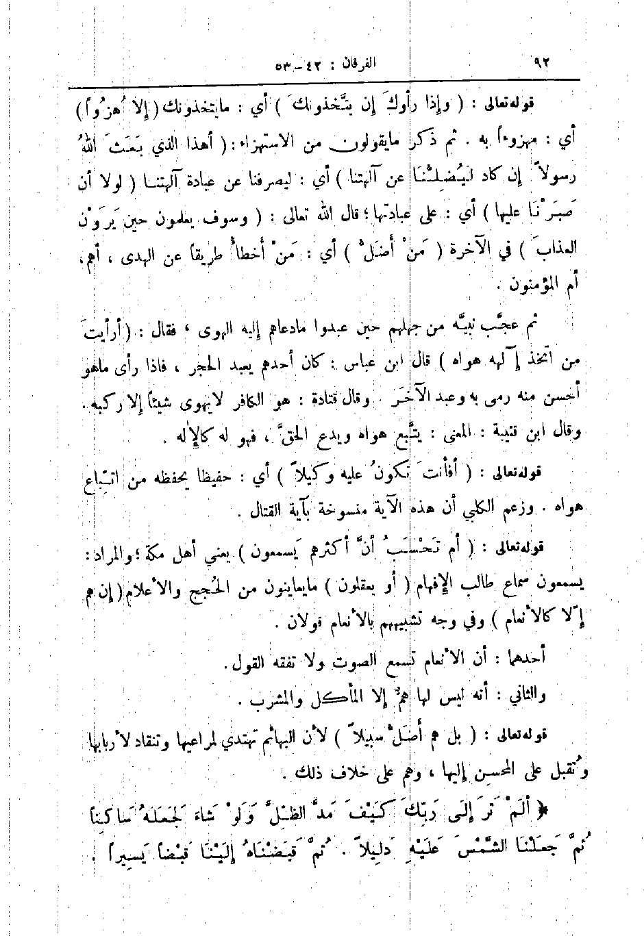 قوله تعالى أم تحسب أن أكثرهم يسمعون يعني أهل مكة والمراد يسمعون سماع طالب الإفهام او يعقلون ما يعاينون من الحجج والأعلام إن هم إلا كالأنعام وفي وجه تشبيههم بالأنعام قولان