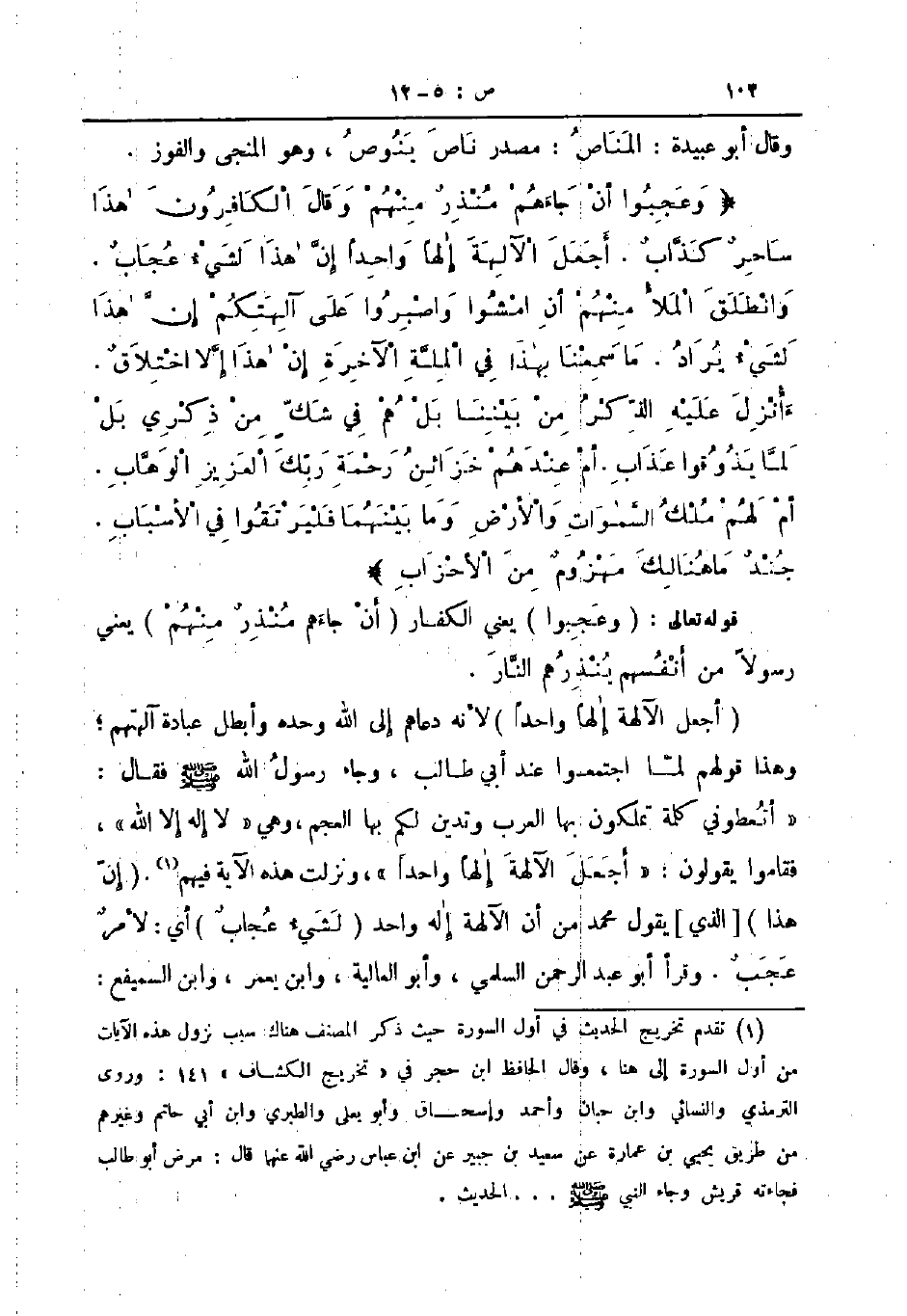 أجعل الآلهة إلها واحدا لأنه دعاهم إلى الله وحده وأبطل عبادة آلتهم وهذا قولهم لما اجتمعوا عند أبي طالب وجاء رسول الله صلى الله عليه و سلم فقال أتعطوني كلمة تملكون بها العرب وتدين لكم بها العجم وهي لا إله إلا الله فقاموا يقولون أجعل الآلهة إلها واحدا ونزلت هذه الآية فيهم إن هذا الذي يقول محمد من أن الآلهة إلها واحدا لشيء عجاب أي لأمر عجب وقرأ أبو عبد الرحمن السلمي وأبو العالية وابن يعمر وابن السميفع