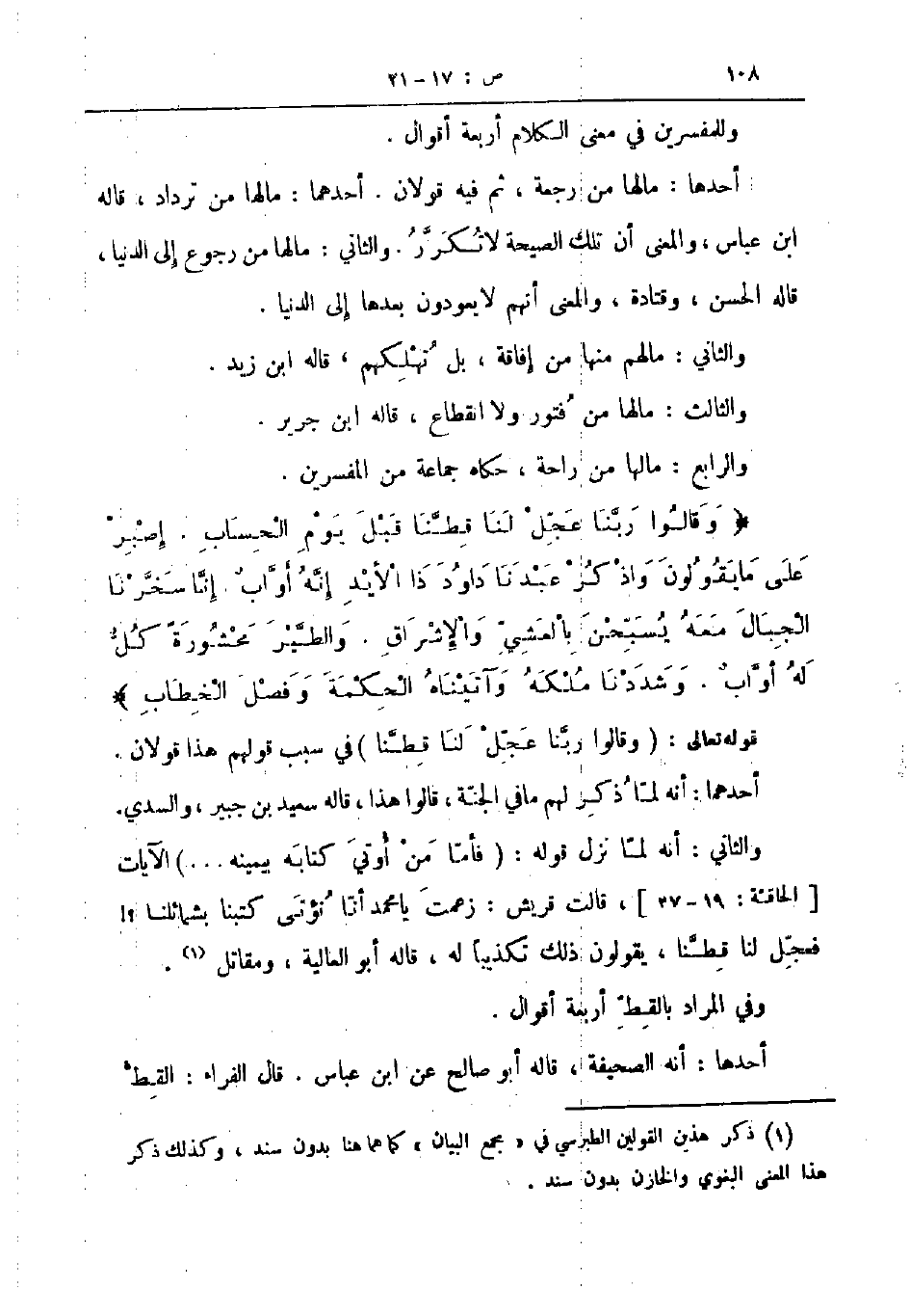 وقالوا ربنا عجل لنا قطنا قبل يوم الحساب إصبر على ما يقولون واذكر عبدنا داود ذا الأيد إنه أواب إنا سخرنا الجبال معه يسبحن بالعشي والإشراق والطير محشورة كل له أواب وشددنا ملكه وآتيناه الحكمة وفصل الخطاب