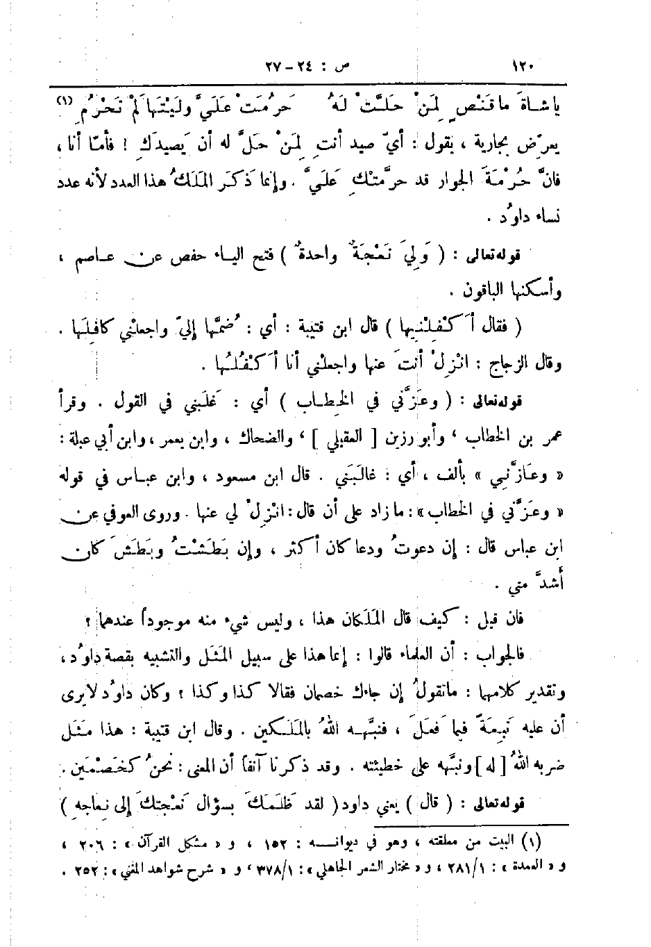 يا شاة ما قنص لمن حلت له ... حرمت علي وليتها لم تحرم ... يعرض بجارية يقول أي صيد أنت لمن حل له أن يصيدك فأما أنا فان حرمة الجوار قد حرمتك علي وإنما ذكر الملك هذا العدد لأنه عدد نساء داود