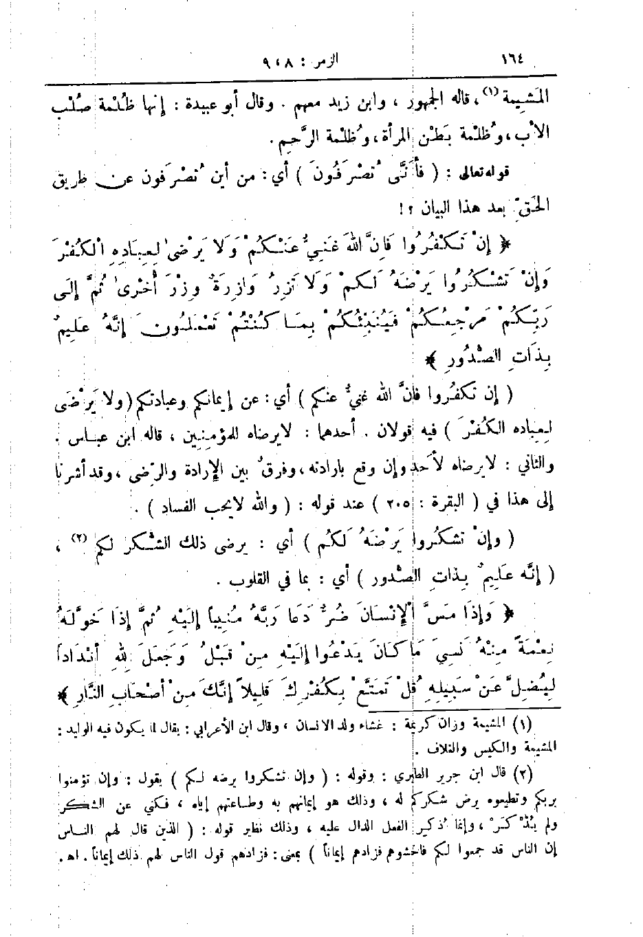 قوله تعالى فأنى تصرفون أي من أين تصرفون عن طريق الحق بعد هذا البيان إن تكفروا فان الله غني عنكم ولا يرضى لعباده الكفر وإن تشكروا يرضه لكم ولا تزر وازرة وزر أخرى ثم إلى ربكم مرجعكم فينبئكم بما كنتم تعلمون إنه عليم بذات الصدور