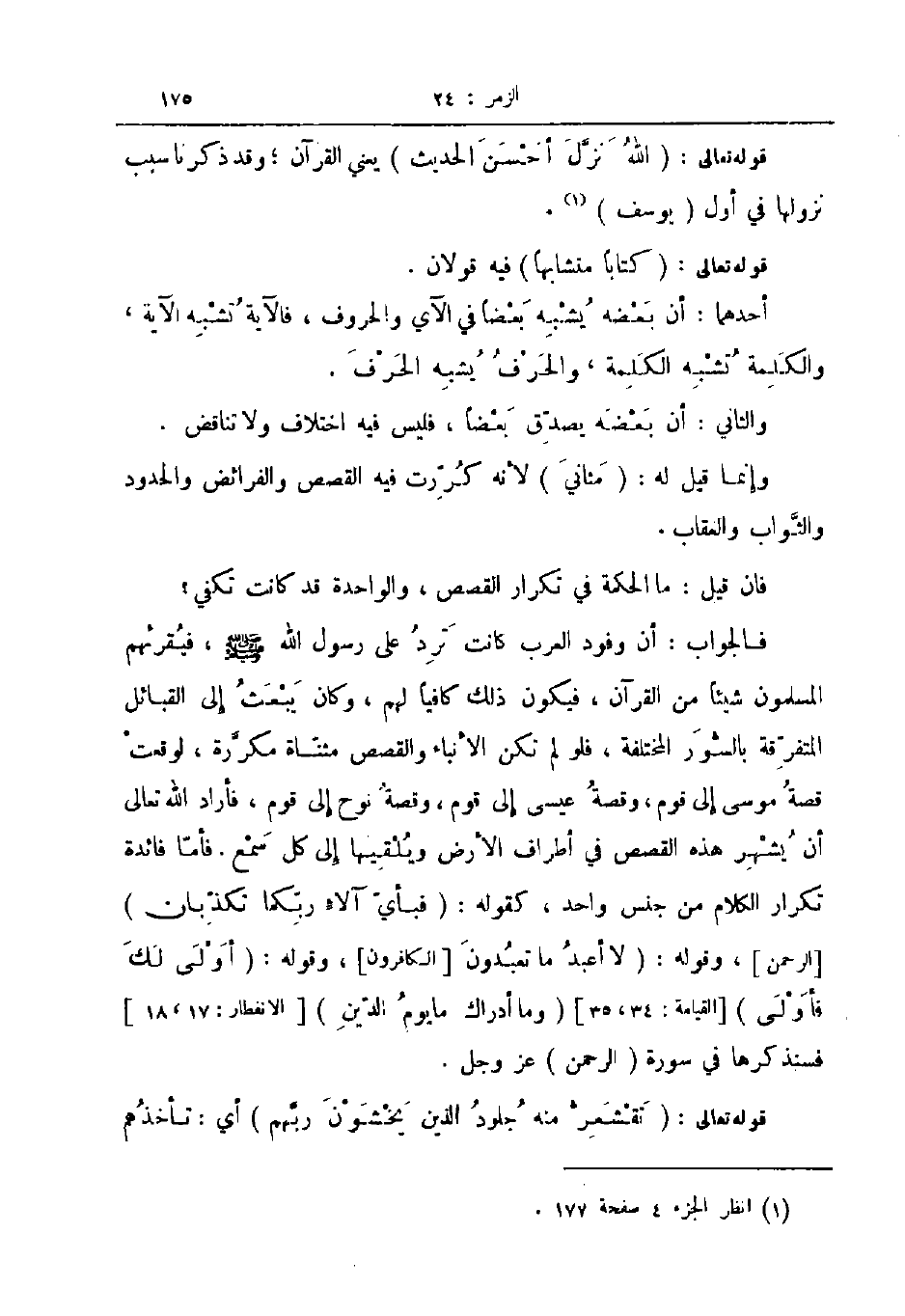 أحدهما أن بعضه يشبه بعضا في الآي والحروف فالآية تشبه الآية والكلمة تشبه الكلمة والحرف يشبه الحرف