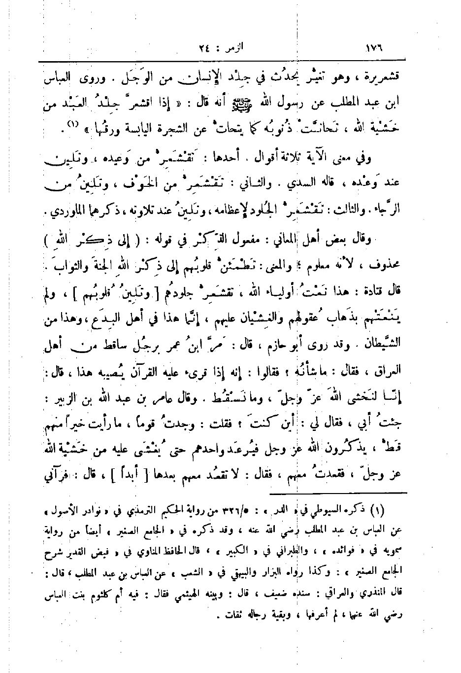 قشعريرة وهو تغير يحدث في جلد الإنسان من الوجل وروى العباس ابن عبد المطلب عن رسول الله صلى الله عليه و سلم أنه قال إذا اقشعر جلد العبد من خشية الله تحاتت ذنوبه كما يتحات عن الشجرة اليابسة ورقها