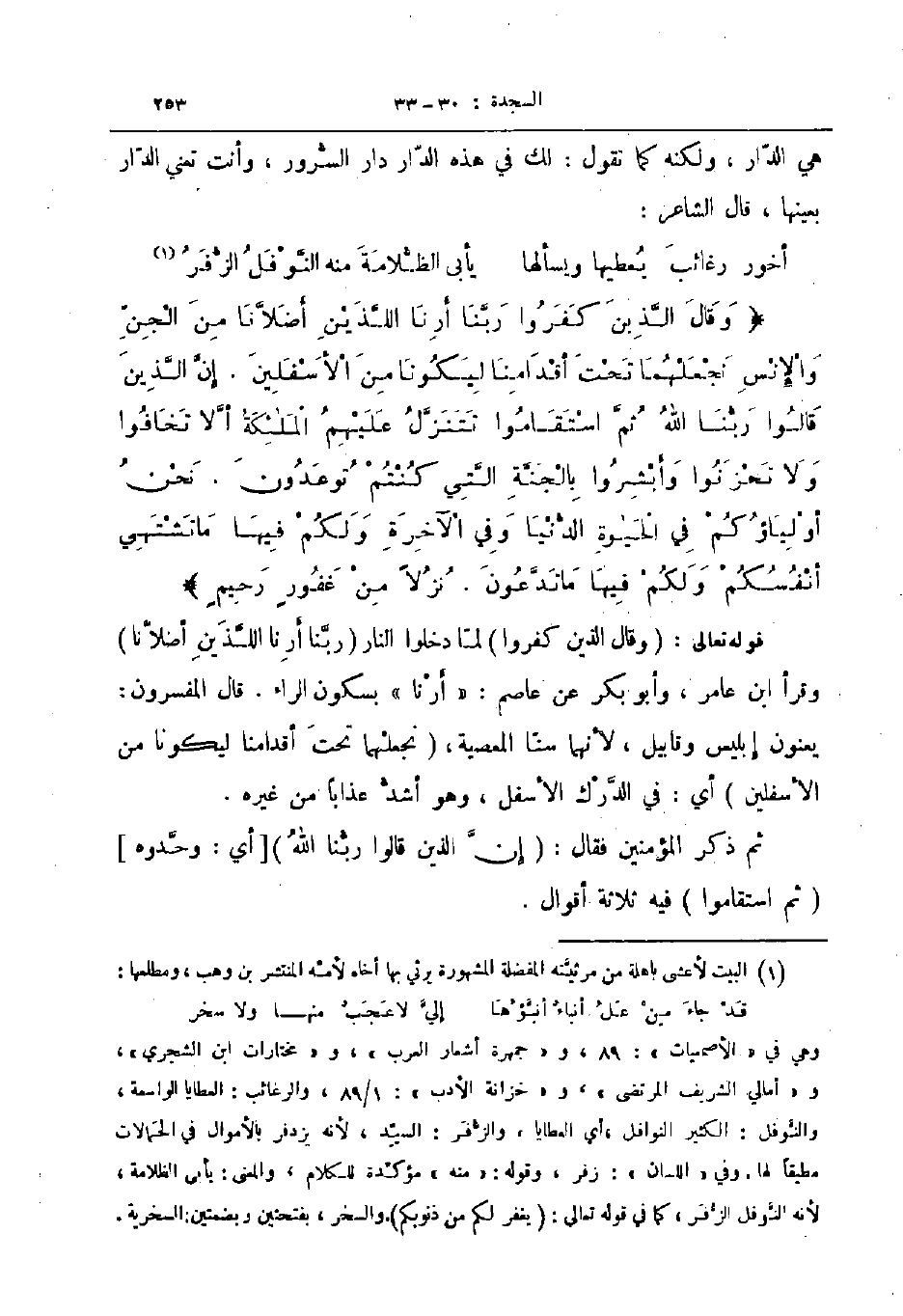 وقال الذين كفروا ربنا أرنا اللذين أضلانا من الجن والإنس نجعلهما تحت أقدامنا ليكونا من الأسفلين إن الذين قالوا ربنا الله ثم استقاموا تتنزل عليهم الملائكة ألا تخافوا ولا تحزنوا وأبشروا بالجنة التي كنتم توعدون نحن أولياؤكم في الحياة الدنيا وفي الآخرة ولكم فيها ما تشتهي أنفسكم ولكم فيها ما تدعون نزلا من غفور رحيم