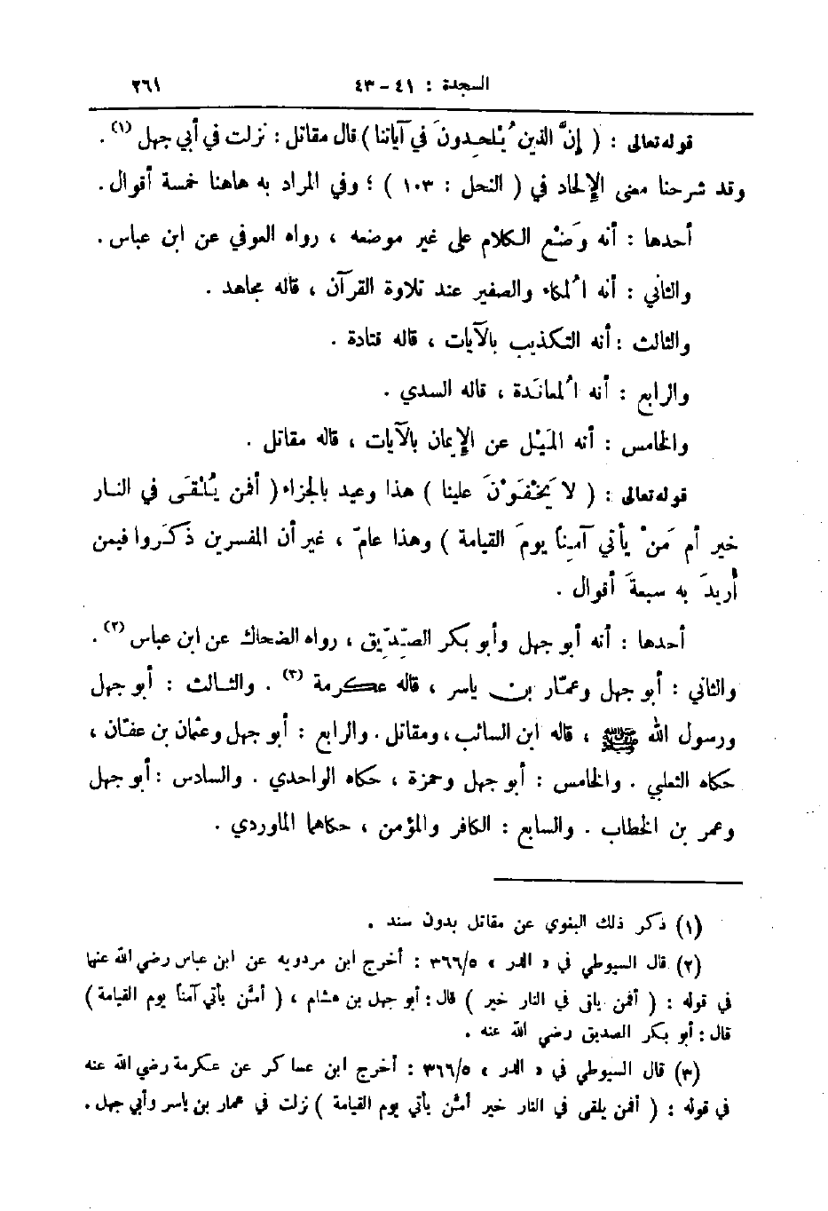 قوله تعالى لا يخفون علينا هذا وعيد بالجزاء أفمن يلقى في النار خير أم من يأتي آمنا يوم القيامة وهذا عام غير أن المفسرين ذكروا فيمن أريد به سبعة أقوال
