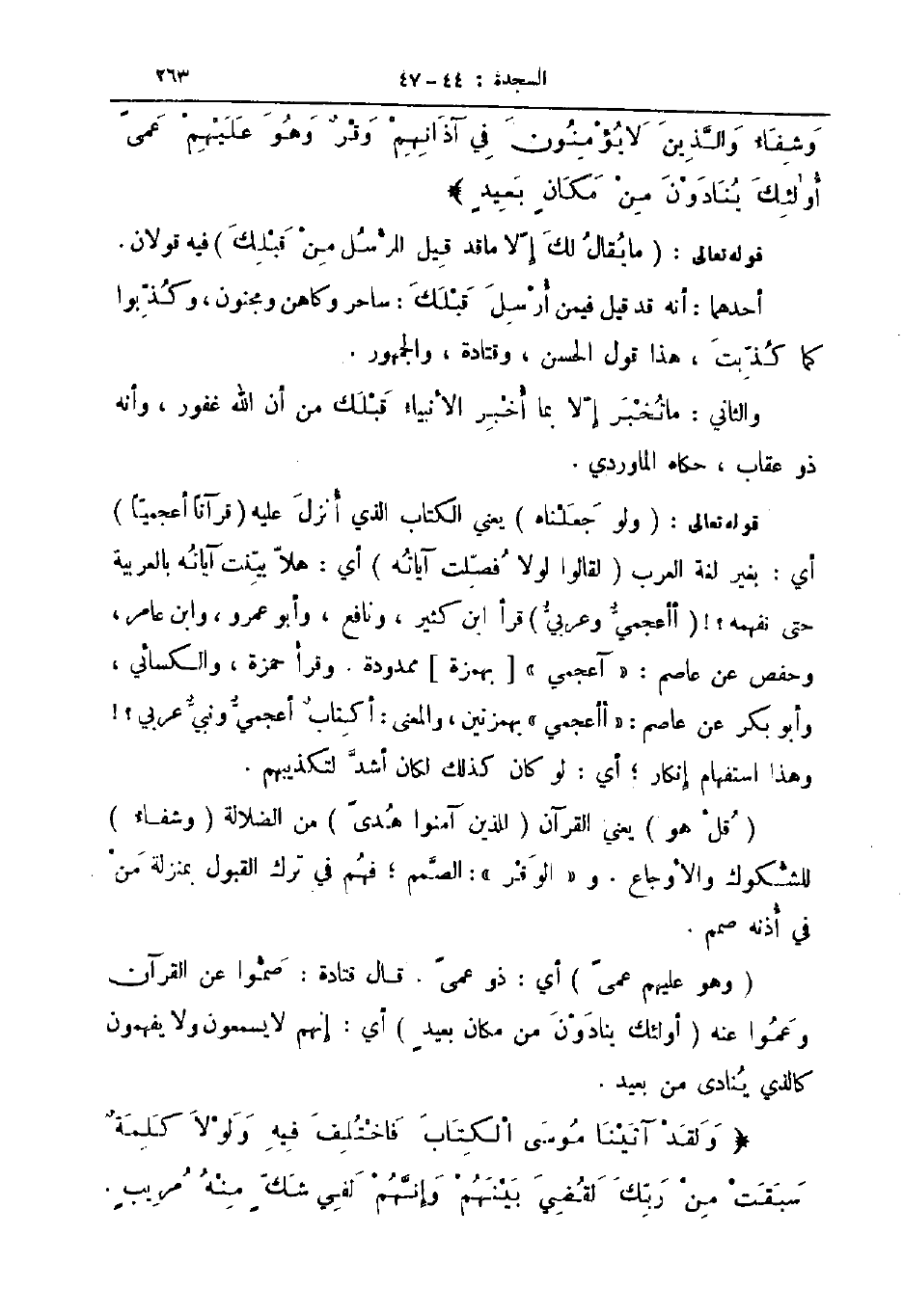 وشفاء والذين لا يؤمنون في آذانهم وقر وهو عليهم عمى أولئك ينادون من مكان بعيد