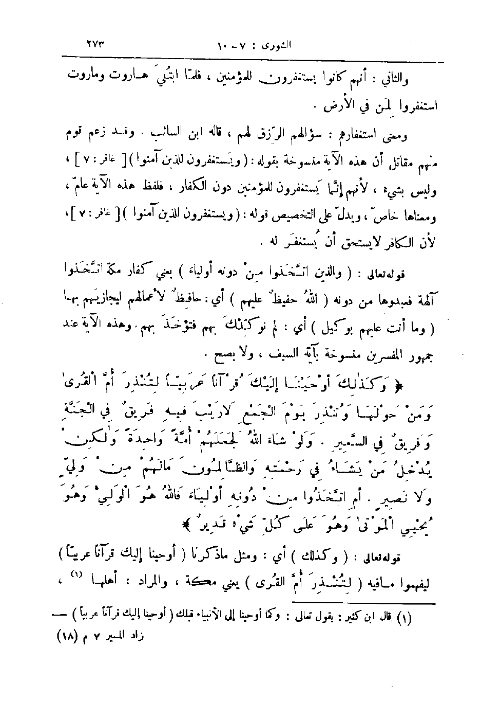 وكذلك أوحينا إليك قرآنا عربيا لتنذر أم القرى ومن حولها وتنذر يوم الجمع لا ريب فيه فريق في الجنة وفريق في السعير ولو شاء الله لجعلهم أمة واحدة ولكن يدخل من يشاء في رحمته والظالمون مالهم من ولي ولا نصير أم اتخذوا من دونه أولياء فالله هو الولي وهو يحيي الموتى وهو على كل شيء قدير