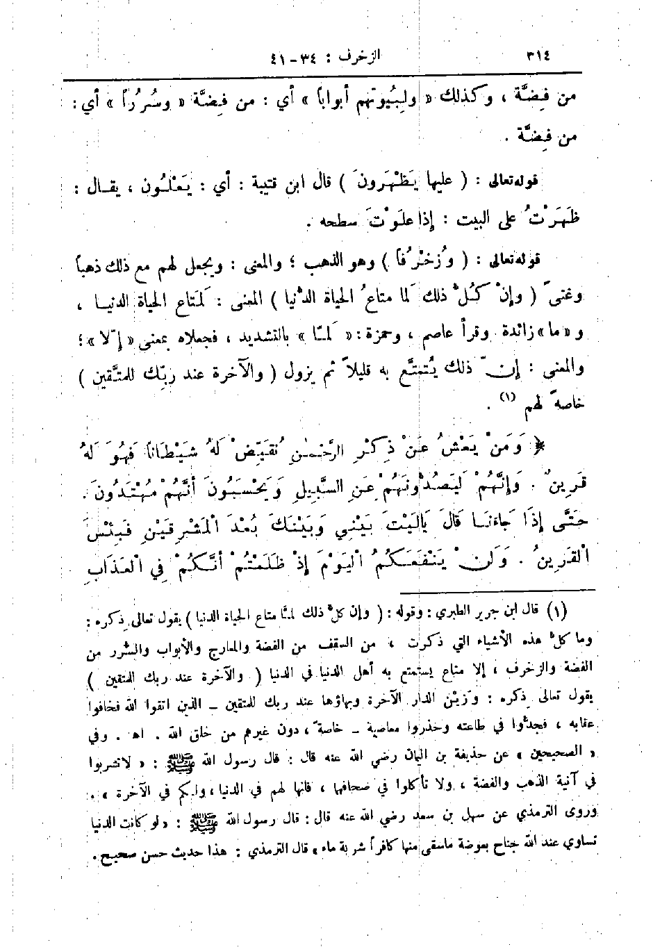 قوله تعالى وزخرفا وهو الذهب والمعنى ويجعل لهم مع ذلك ذهبا وغنى وإن كل ذلك لما متاع الحياة الدنيا المعنى لمتاع الحياة الدنيا وما زائدة وقرأ عاصم وحمزة لما بالتشديد فجعلاه بمعنى إلا والمعنى إن ذلك يتمتع به قليلا ثم يزول والآخرة عند ربك للمتقين خاصة لهم