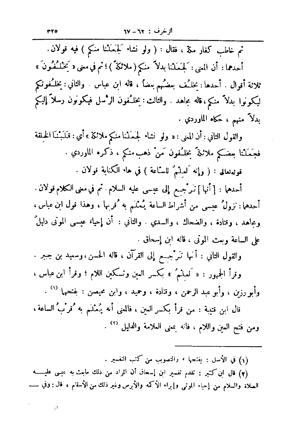 قوله تعالى وإنه لعلم للساعة في هاء الكناية قولان