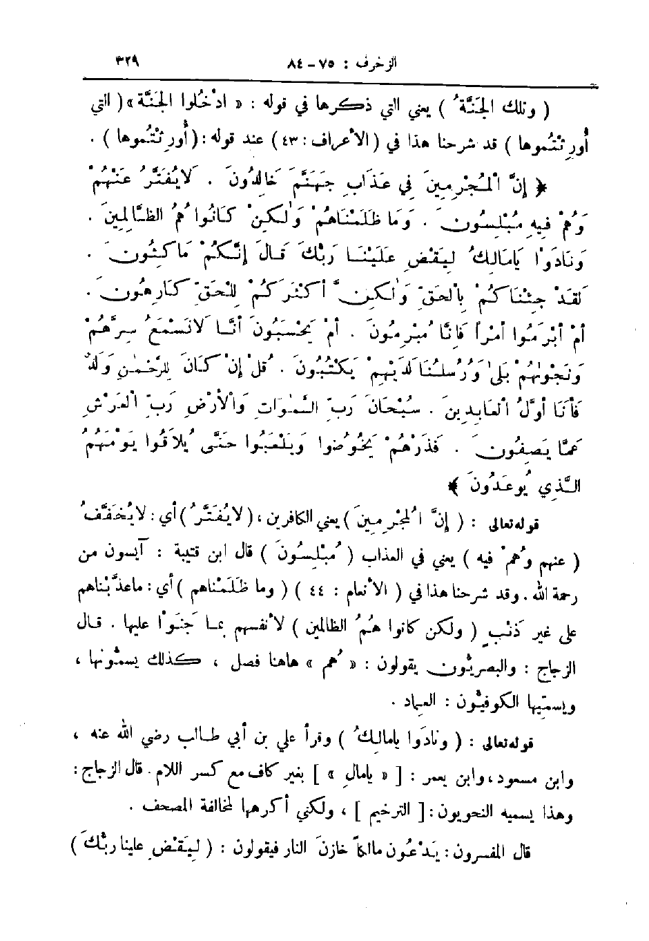 إن المجرمين في عذاب جهنم خالدين لا يفتر عنهم وهم فيه مبلسون وما ظلمناهم ولكن كانوا هم الظالمين ونادوا يا مالك ليقض علينا ربك قال إنكم ما كثون لقد جئناكم بالحق ولكن أكثركم للحق كارهون ام أبرموا أمرا فانا مبرمون أم يحسبون أنا لا نسمع سرهم ونجواهم بلى ورسلنا لديهم يكتبون قل إن كان للرحمن ولد فأنا أول العابدين سبحان رب السموات والأرض رب العرش عما يصفون فذرهم يخوضوا ويلعبوا حتى يلاقوا يومهم الذي يوعدون