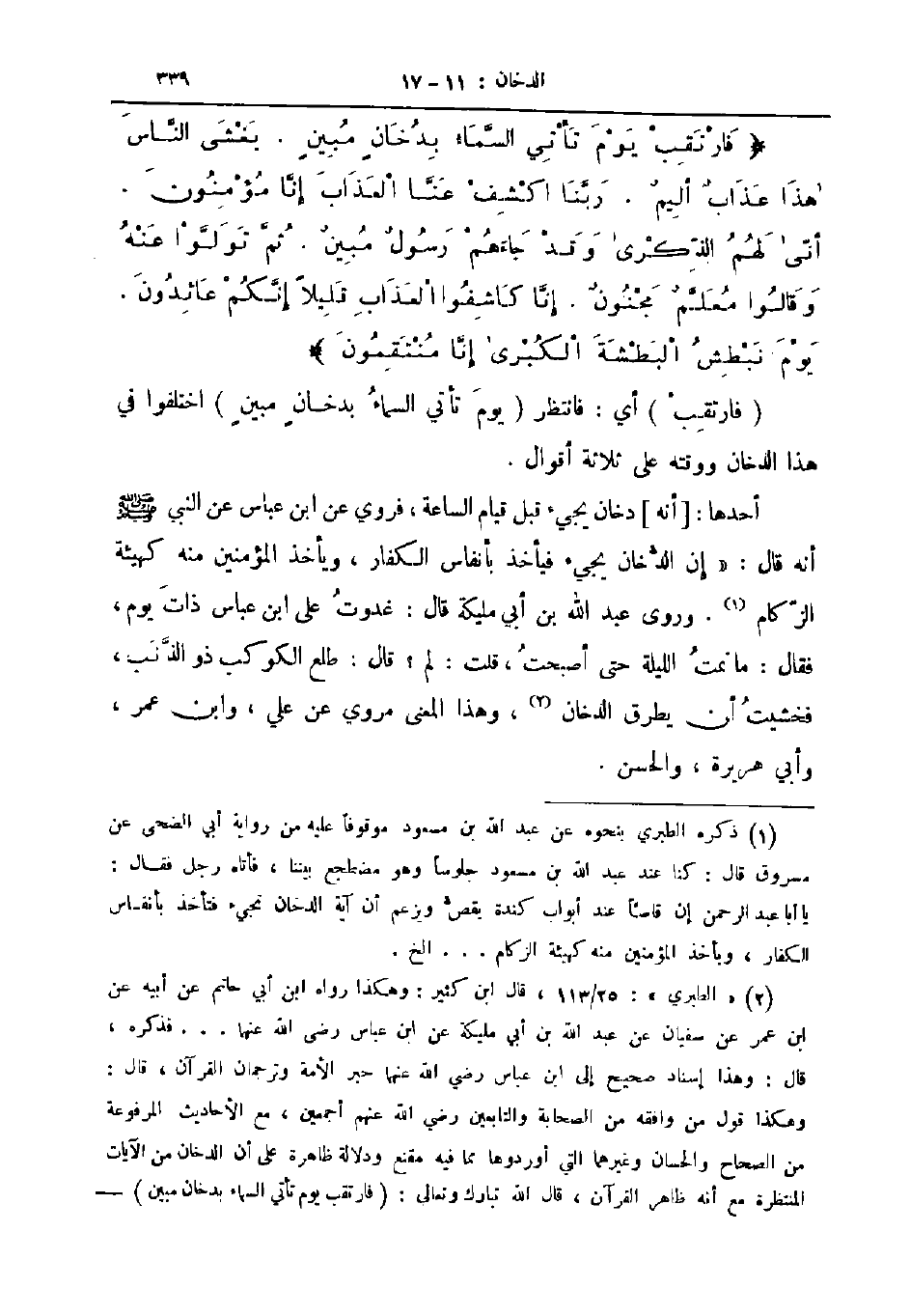 فارتقب أي فانتظر يوم تأتي السماء بدخان مبين اختلفوا في هذا الدخان ووقته على ثلاثة أقوال