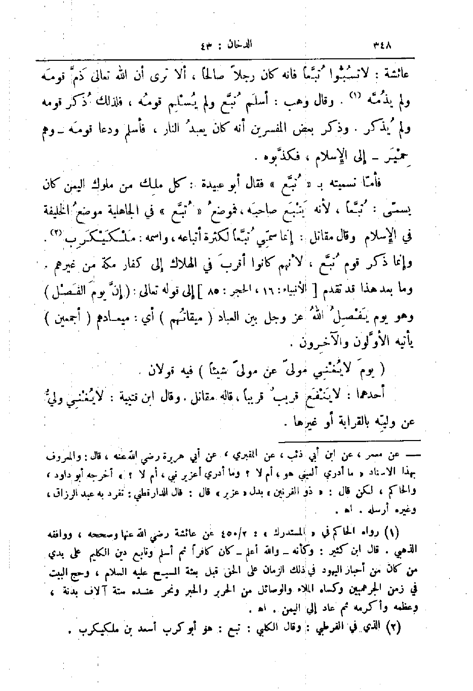 فأما تسميته ب تبع فقال أبو عبيدة كل ملك من ملوك اليمن كان يسمى تبعا لأنه يتبع صاحبه فموضع تبع في الجاهلية موضع الخليفة في الإسلام وقال مقاتل إنما سمي تبعا لكثرة أتباعه واسمه ملكيكرب وإنما ذكر قوم تبع لأنهم كانوا أقرب في الهلاك إلى كفار مكة من غيرهم وما بعد هذا قد تقدم الأنبياء 16 الحجر 85 إلى قوله تعالى إن يوم الفصل وهو يوم يفصل الله عز و جل بين العباد ميقاتهم أي ميعادهم أجمعين يأتيه الأولون والآخرون