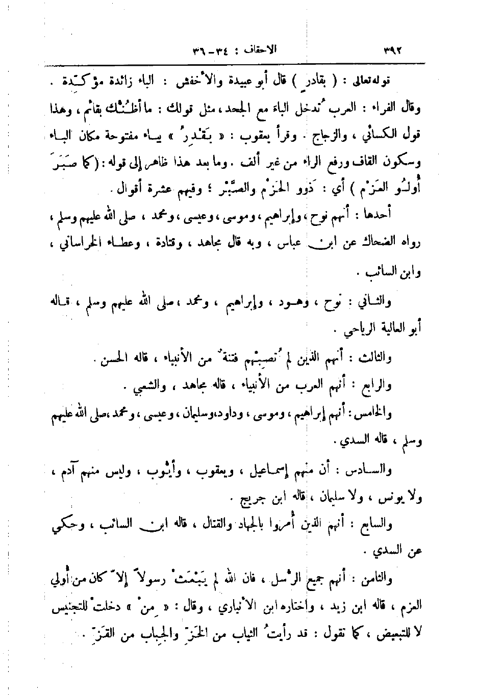 قوله تعالى بقادر قال أبو عبيدة والأخفش الباء زائدة مؤكدة وقال الفراء العرب تدخل الباء مع الجحد مثل قولك ما أظنك بقائم وهذ قول الكسائي والزجاج وقرأ يعقوب يقدر بياء مفتوحة مكان الباء وسكون القاف ورفع الراء من غير ألف وما بعد هذا ظاهر إلى قوله كما صبر أولوا العزم أي ذوو الحزم والصبر وفيهم عشرة أقوال
