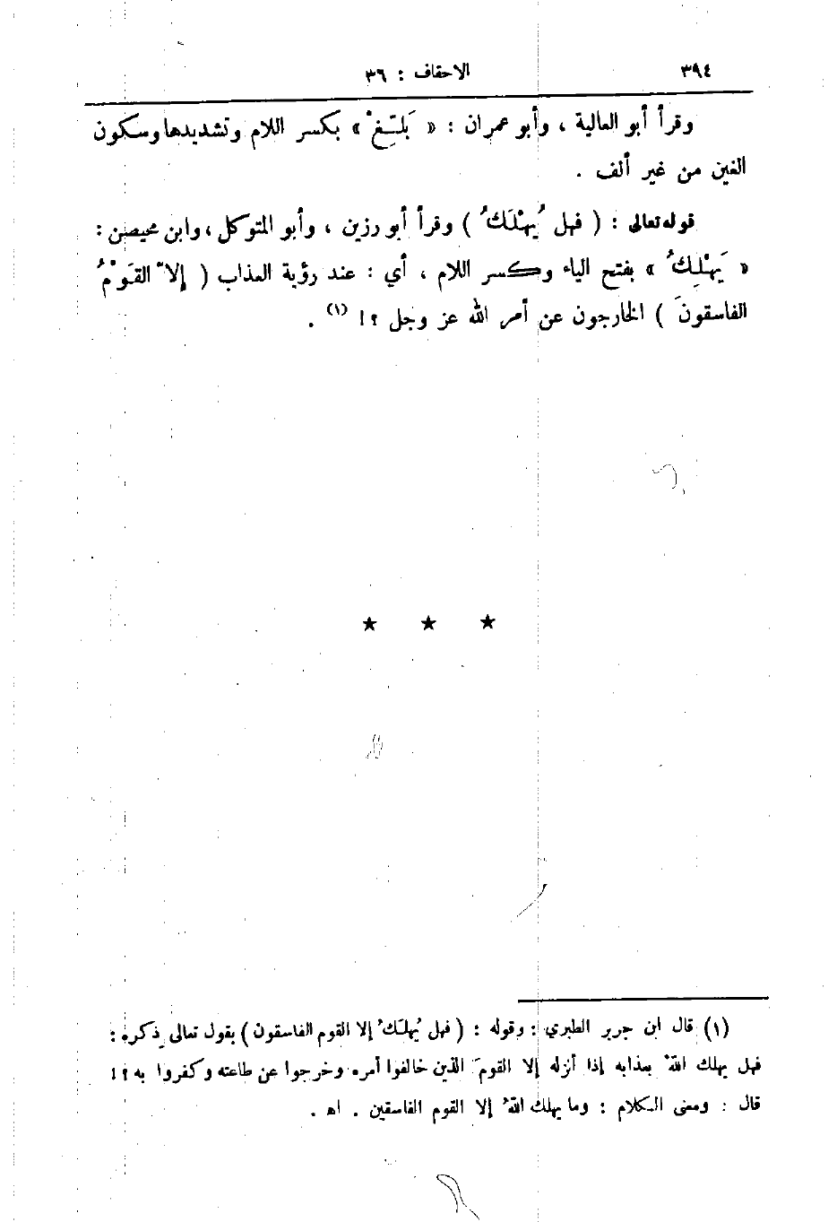 قوله تعالى فهل يهلك وقرأ أبو رزين وأبو المتوكل وابن محيصن يهلك بفتح الياء وكسر اللام أي عند رؤية العذاب إلا القوم الفاسقون الخارجون عن أمر الله عز و جل