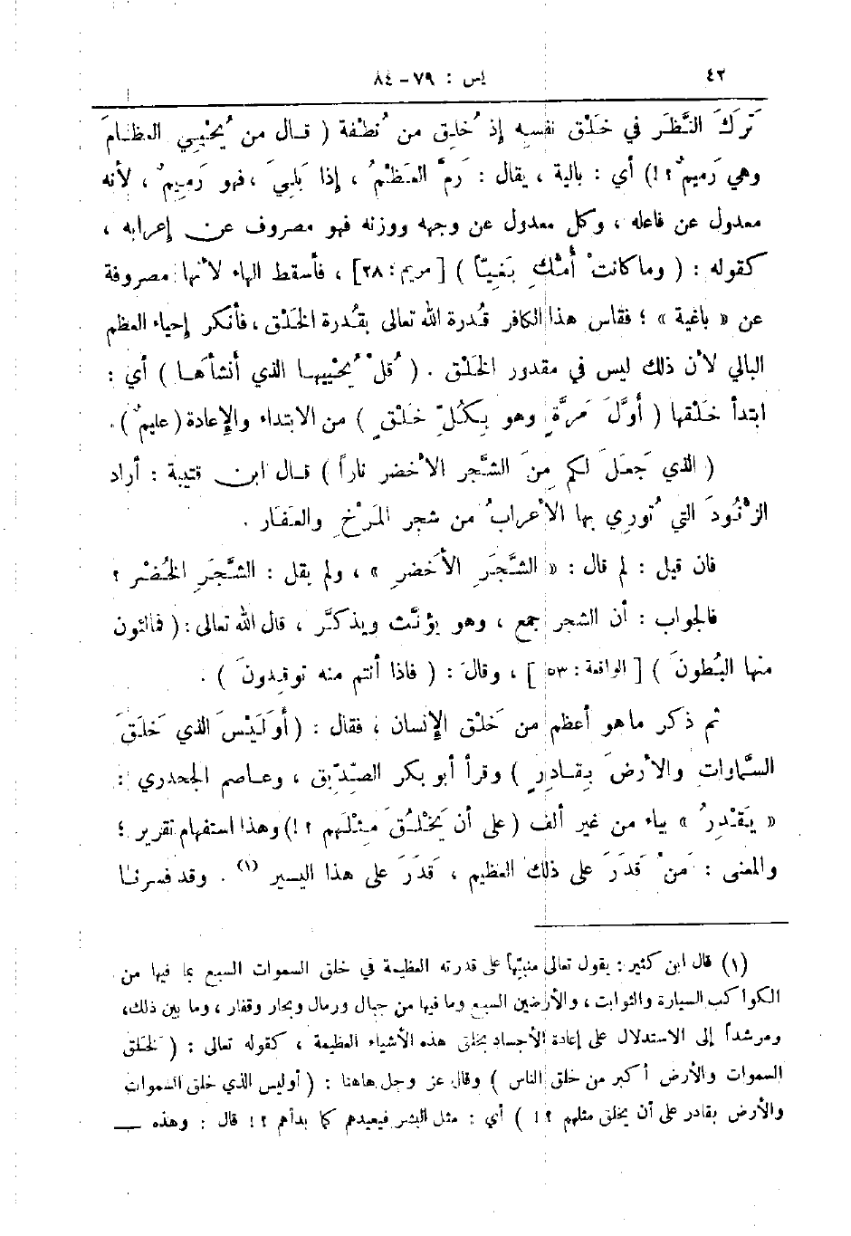 ترك النظر في خلق نفسه إذ خلق من نطفة قال من يحيي العظام وهي رميم أي بالية يقال رم العظم إذا بلي فهو رميم لأنه معدول عن فاعله وكل معدول عن وجهه و وزنه فهو مصروف عن إعرابه كقوله وما كانت أمك بغيا مريم 28 فأسقط الهاء لأنها مصروفة عن باغية فقاس هذا الكافر قدرة الله تعالى بقدرة الخلق فأنكر إحياء العظم البالي لأن ذلك ليس في مقدور الخلق قل يحييها الذي أنشأها أي ابتدأ خلقها أول مرة وهو بكل خلق من الابتداء والإعادة عليم