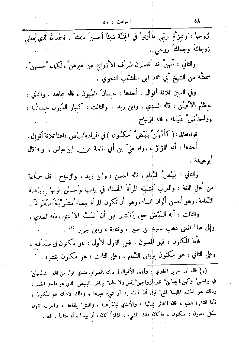 والثاني أنهن قد قصرن طرف الأزواج عن غيرهن لكمال حسنهن سمعته من الشيخ أبي محمد ابن الخشاب النحوي