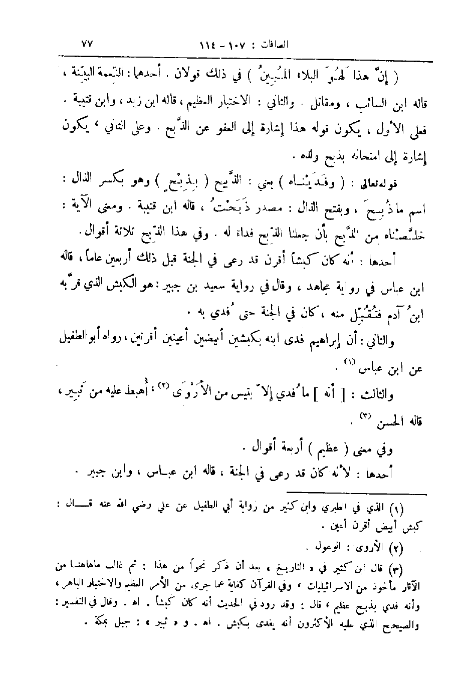 والثاني أن إبراهيم فدى ابنه بكبشين أبيضين أعينين أقرنين رواه أبو الطفيل عن ابن عباس