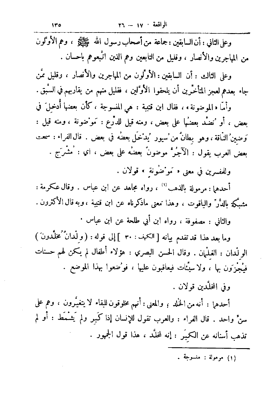 وما بعد هذا قد تقدم بيانه الكهف 30 إلى قوله ولدان مخلدون الولدان الغلمان وقال الحسن البصري هؤلاء أطفال لم يكن لهم حسنات فيجزون بها ولا سيئات فيعاقبون عليها فوضعوا بهذا الموضع