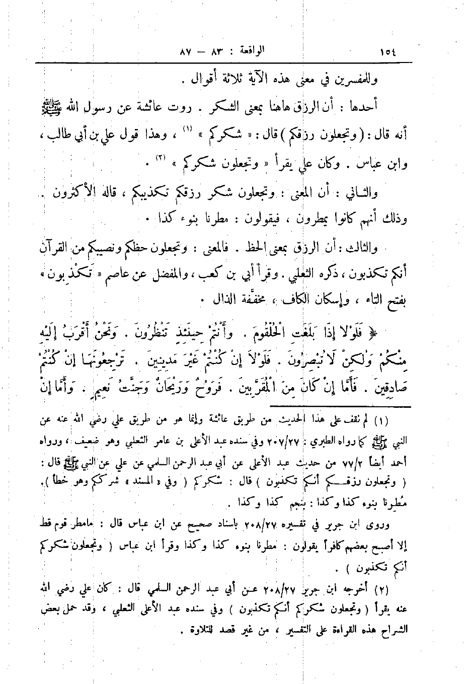 والثاني أن المعنى وتجعلون شكر رزقكم تكذيبكم قاله الأكثرون وذلك أنهم كانوا يمطرون فيقولون مطرنا بنوء كذا