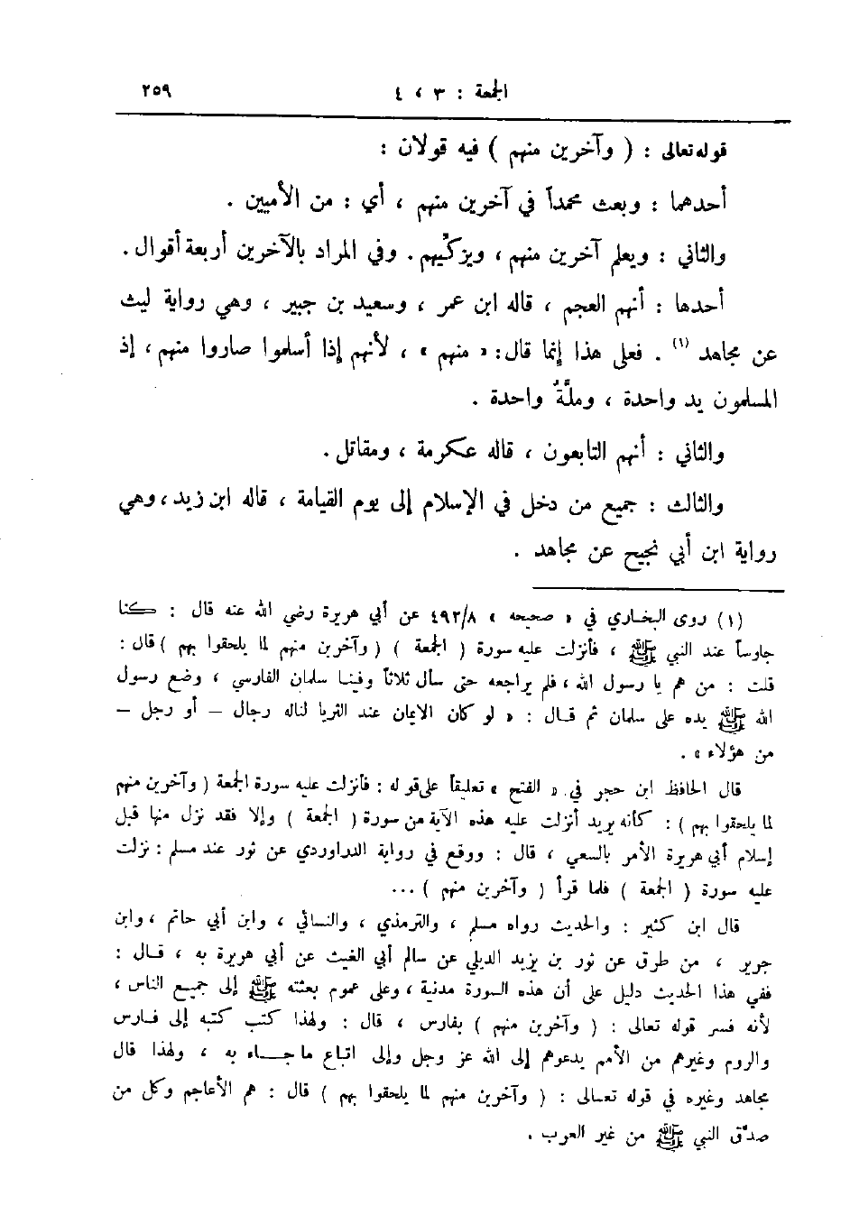 أحدها أنهم العجم قاله ابن عمر وسعيد بن جبير وهي رواية ليث عن مجاهد فعلى هذا إنما قال منهم لأنهم إذا أسلموا صاروا منهم إذ المسلمون يد واحدة وملة واحدة
