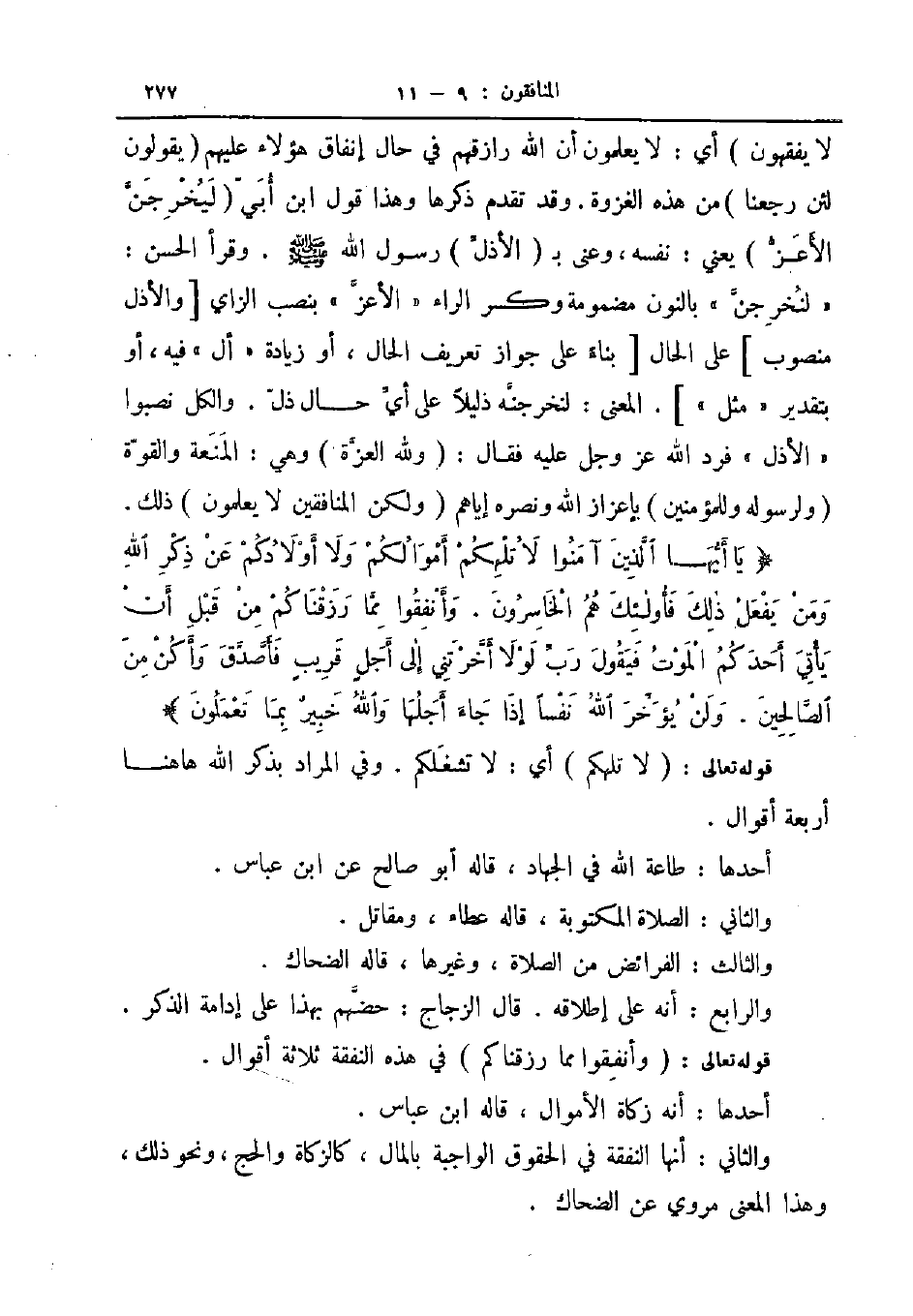يا أيها الذين آمنوا لا تلهكم أموالكم ولا أولادكم عن ذكر الله ومن يفعل ذلك فأولئك هم الخاسرون وأنفقوا مما رزقناكم من قبل أن يأتي أحدكم الموت فيقول رب لولا أخرتني إلى أجل قريب فأصدق وأكن من الصالحين ولن يؤخر الله نفسا إذا جاء أجلها والله خبير بما تعملون