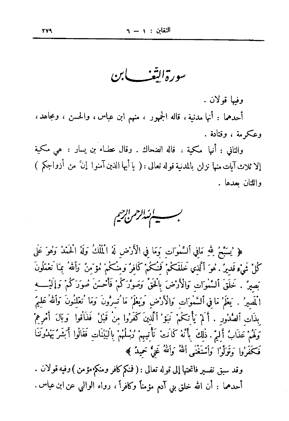 وقد سبق تفسير فاتحتها إلى قوله تعالى فمنكم كافر ومنكم مؤمن وفيه قولان