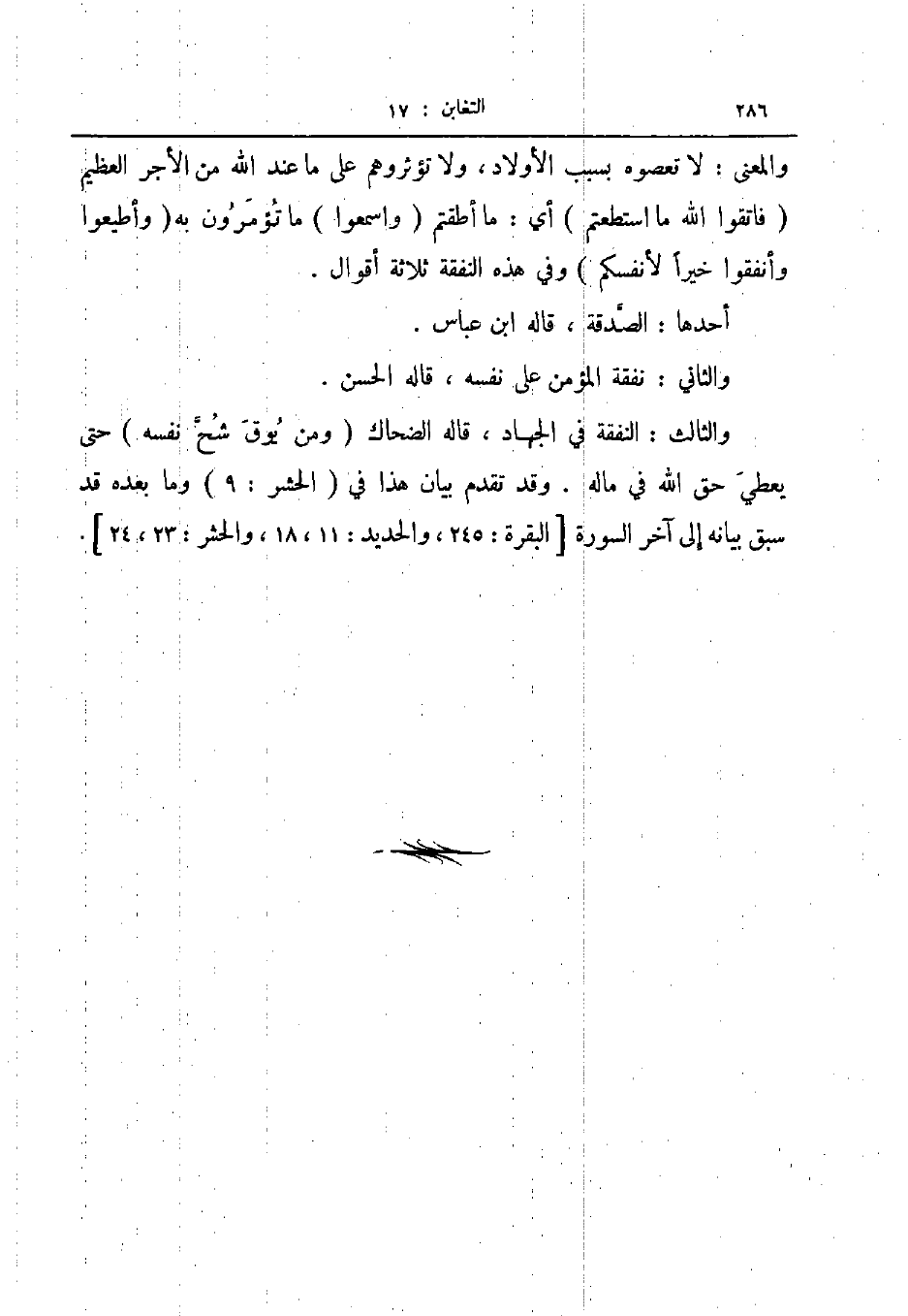 والثالث النفقة في الجهاد قاله الضحاك ومن يوق شح نفسه حتى يعطي حق الله في ماله وقد تقدم بيان هذا في الحشر 9 وما بعده قد سبق بيانه إلى آخر السورة البقرة 254 والحديد 11 18 والحشر 23 24