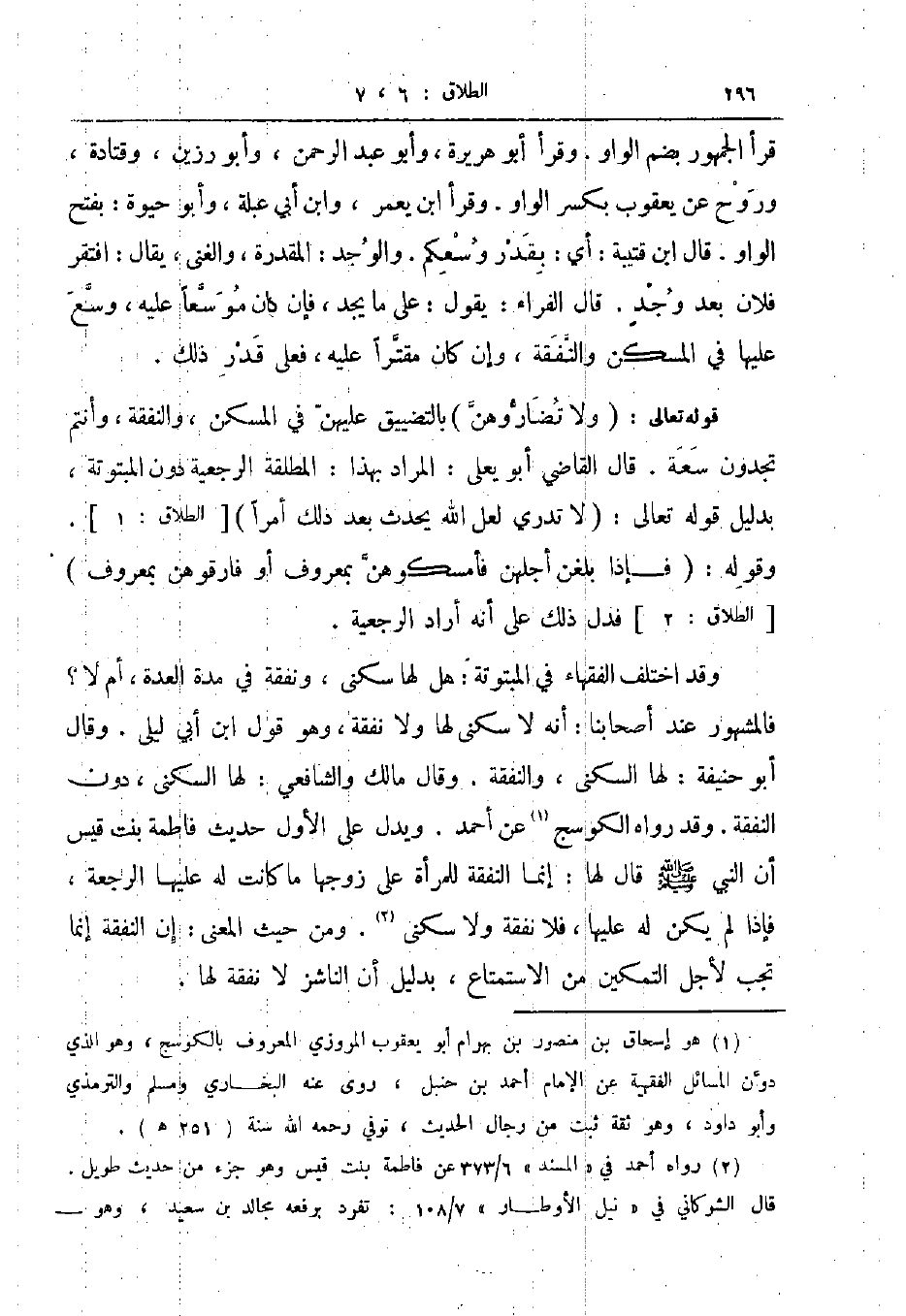قوله تعالى ولا تضاروهن بالتضييق عليهن في المسكن والنفقة وأنتم تجدون سعة قال القاضي أبو يعلى المراد بهذا الملطقة الرجعية دون المبتوتة بدليل قوله تعالى لا تدري لعل الله يحدث بعد ذلك أمرا الطلاق 1 وقوله فإذا بلغن أجلهن فأمسكوهن بمعروف أو فارقوهن بمعروف الطلاق 2 فدل ذلك على أنه أراد الرجعية