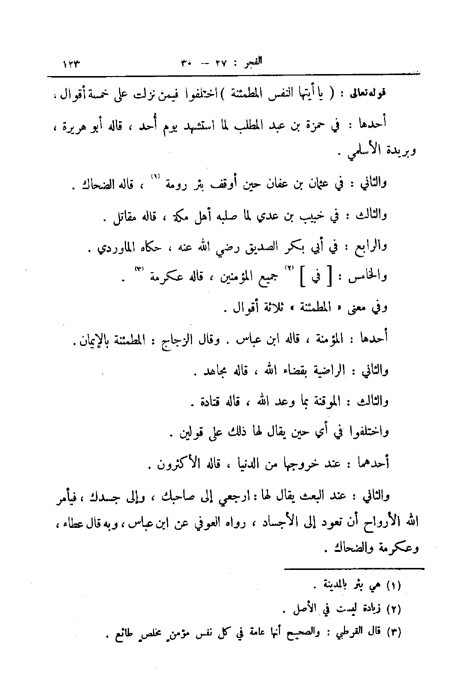 قوله تعالى يا أيتها النفس المطمئنة اختلفوا فيمن نزلت على خمسة أقوال