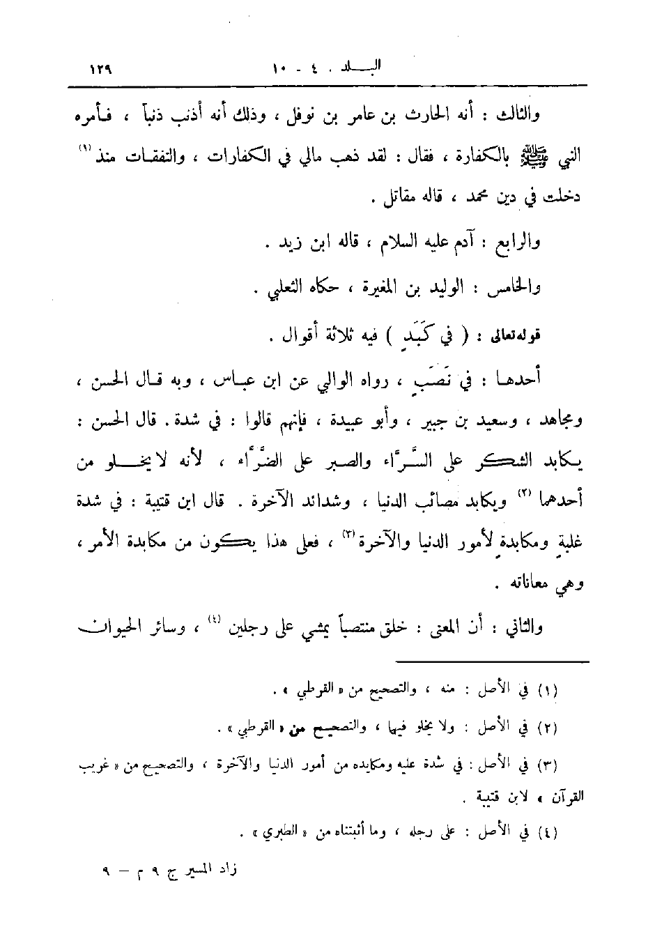 والثالث أنه الحارث بن عامر بن نوفل وذلك أنه أذنب ذنبا فأمره النبي صلى الله عليه و سلم بالكفارة فقال لقد ذهب مالي في الكفارات والنفقات منذ دخلت في دين محمد قاله مقاتل