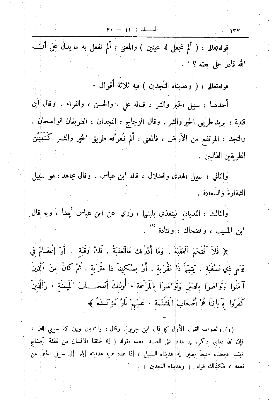 أحدها سبيل الخير والشر قاله علي والحسن والفراء وقال ابن قتيبة يريد طريق الخير والشر وقال الزجاج النجدان الطريقان الواضحان والنجد المرتفع من الأرض فالمعنى ألم نعرفه طريق الخير والشر كتبين الطريقين العاليين