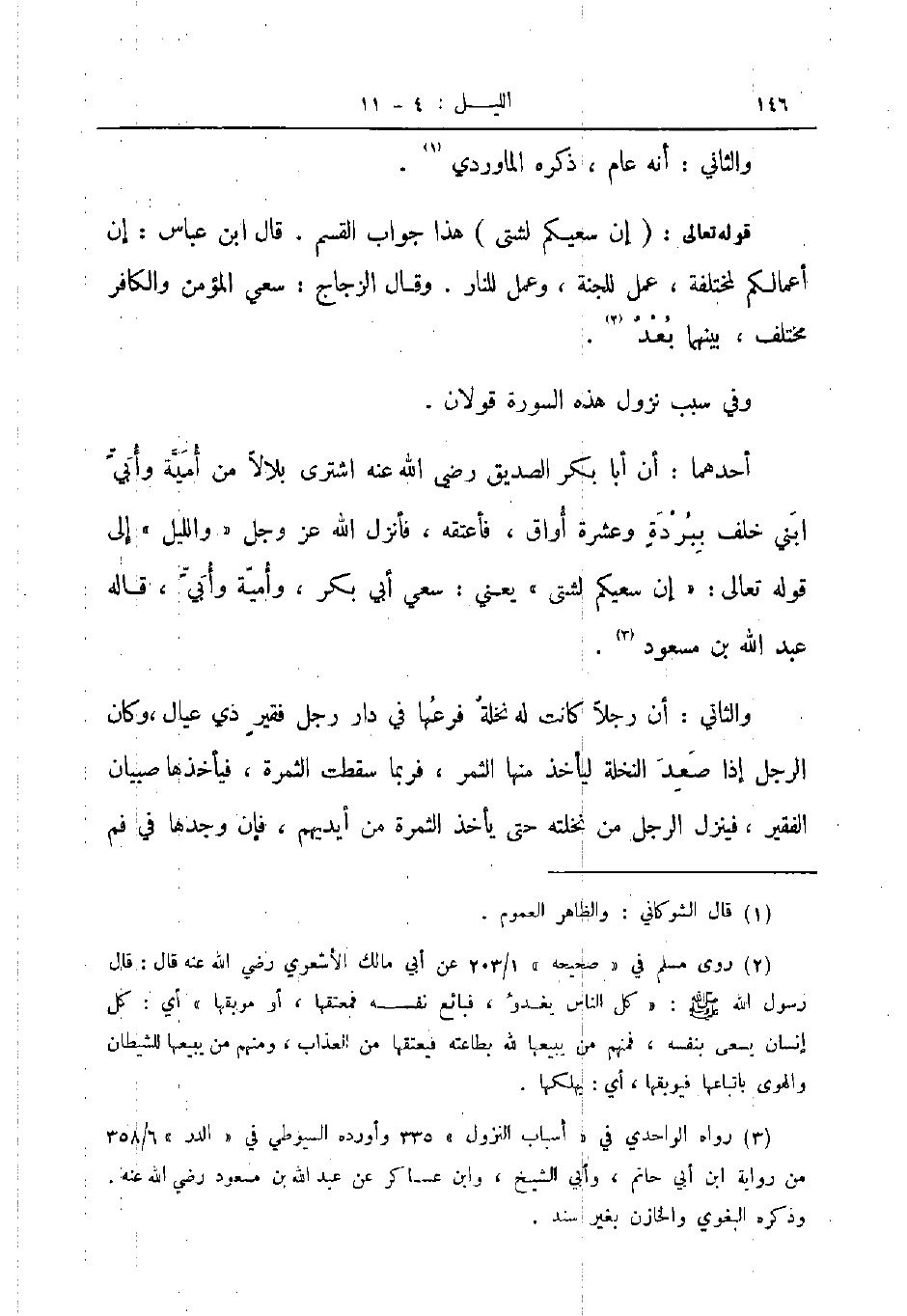 أحدهما أن أبا بكر الصديق رضي الله عنه اشترى بلالا من أمية وأبي ابني خلف ببردة وعشرة أواق فأعتقه فأنزل الله عز و جل والليل الى قوله تعالى إن سعيكم لشتى يعني سعي أبي بكر وأمية وأبي قاله عبد الله بن مسعود