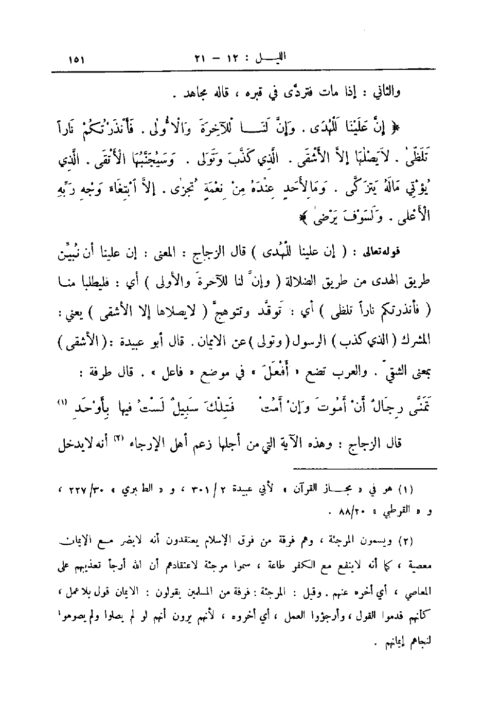 قوله تعالى إن علينا للهدى قال الزجاج المعنى إن علينا ان نبين طريق الهدى من طريق الضلالة وإن لنا للآخرة والأولى أي فليطلبا منا فأنذرتكم نارا تلظى أي توقد وتتوهج لا يصلاها إلا الأشقى يعني المشرك الذي كذب الرسول وتولى عن الإيمان قال أبو عبيدة الأشقى بمعنى الشقي والعرب تضع أفعل في موضع فاعل قال طرفة