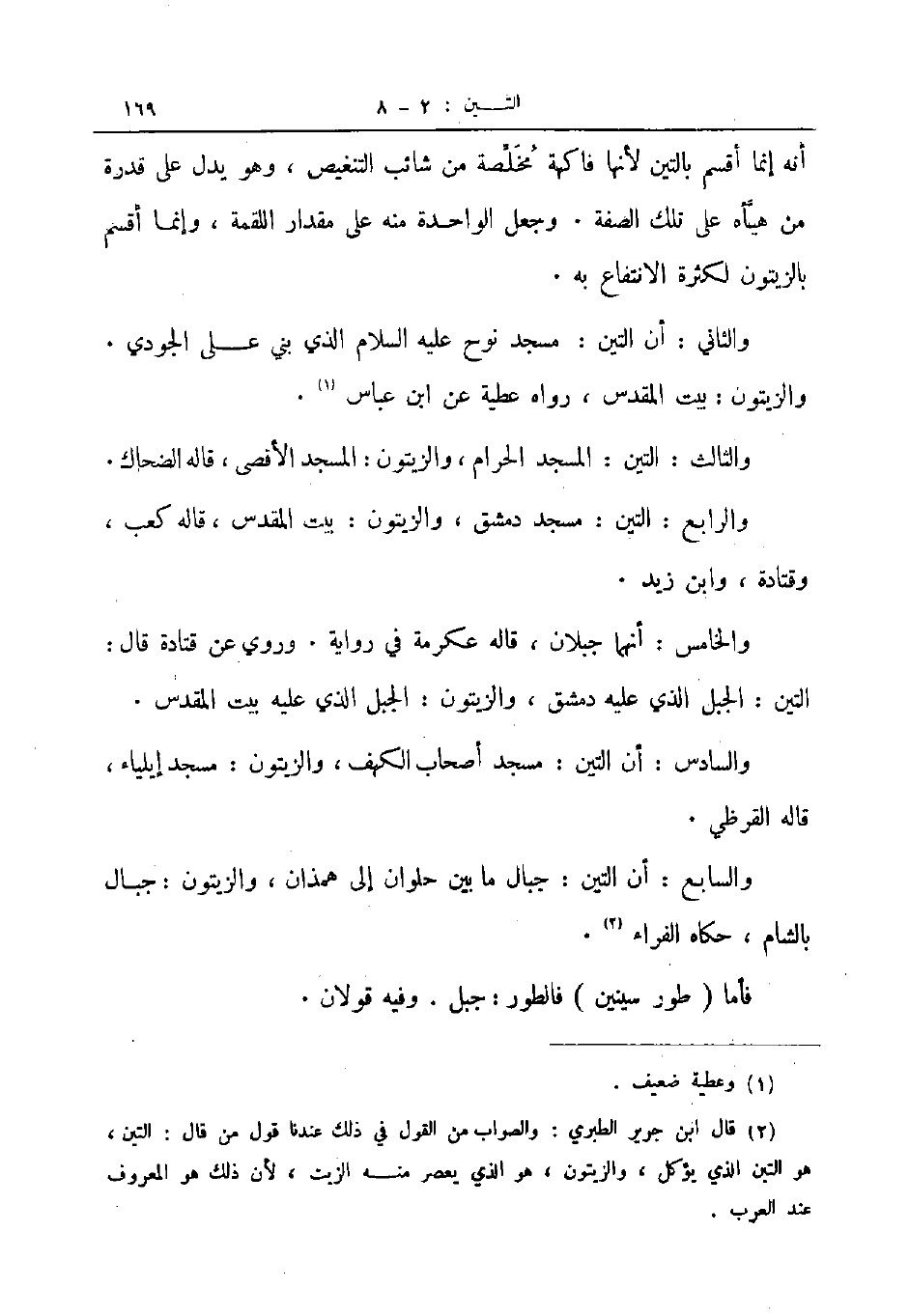والسابع أن التين جبال ما بين حلوان الى همذان والزيتون جبال بالشام حكاه الفراء