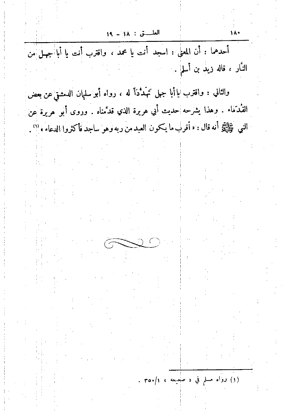والثاني واقترب يا أبا جهل تهددا له رواه أبو سليمان الدمشقي عن بعض القدماء وهذا يشرحه حديث أبي هريرة الذي قدمناه وروى أبو هريرة عن النبي صلى الله عليه و سلم أنه قال أقرب ما يكون العبد من ربه وهو ساجد فأكثروا الدعاء