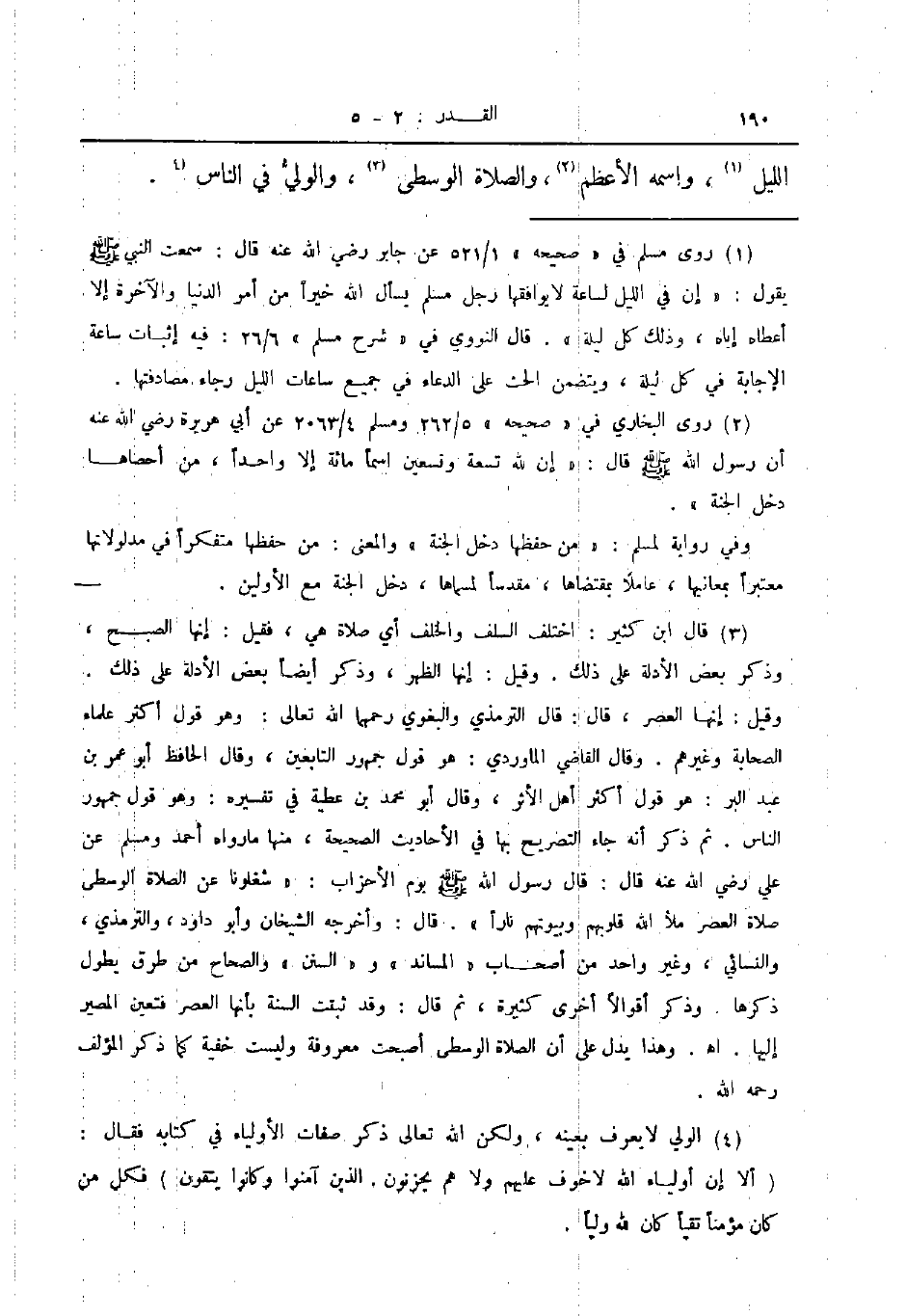الليل واسمه الأعظم والصلاة الوسطى والولي في الناس