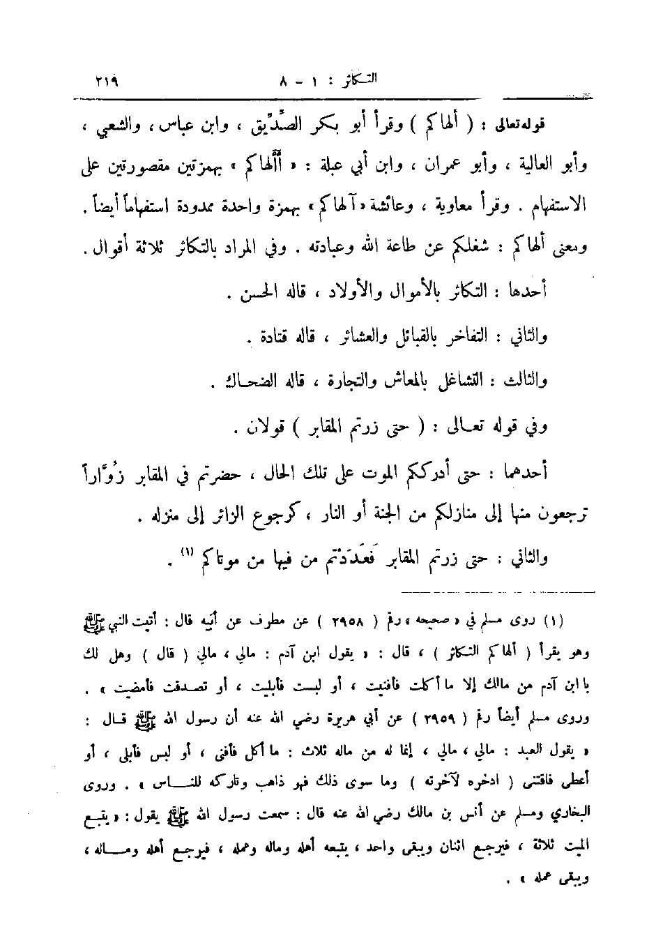 وفي المراد بالتكاثر ثلاثة أقوال.