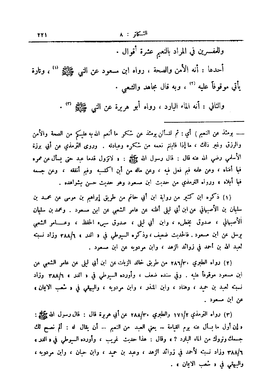 وللمفسرين في المراد بالنعيم عشرة أقوال.