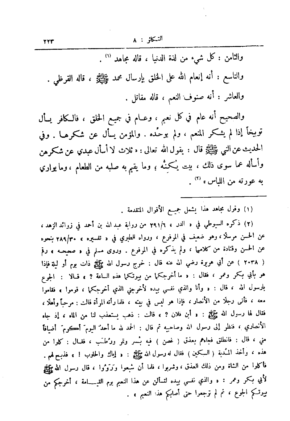 وفي الحديث عن النبي صلى الله عليه وسلم قال : يقول الله تعالى : " ثلاث لا أسأل عبدي عن شكرهن وأسأله عما سوى ذلك ، بيت يُكنُّه؛ وما يقيم به صلبه من الطعام ، وما يواري به عورته من اللباس ".
