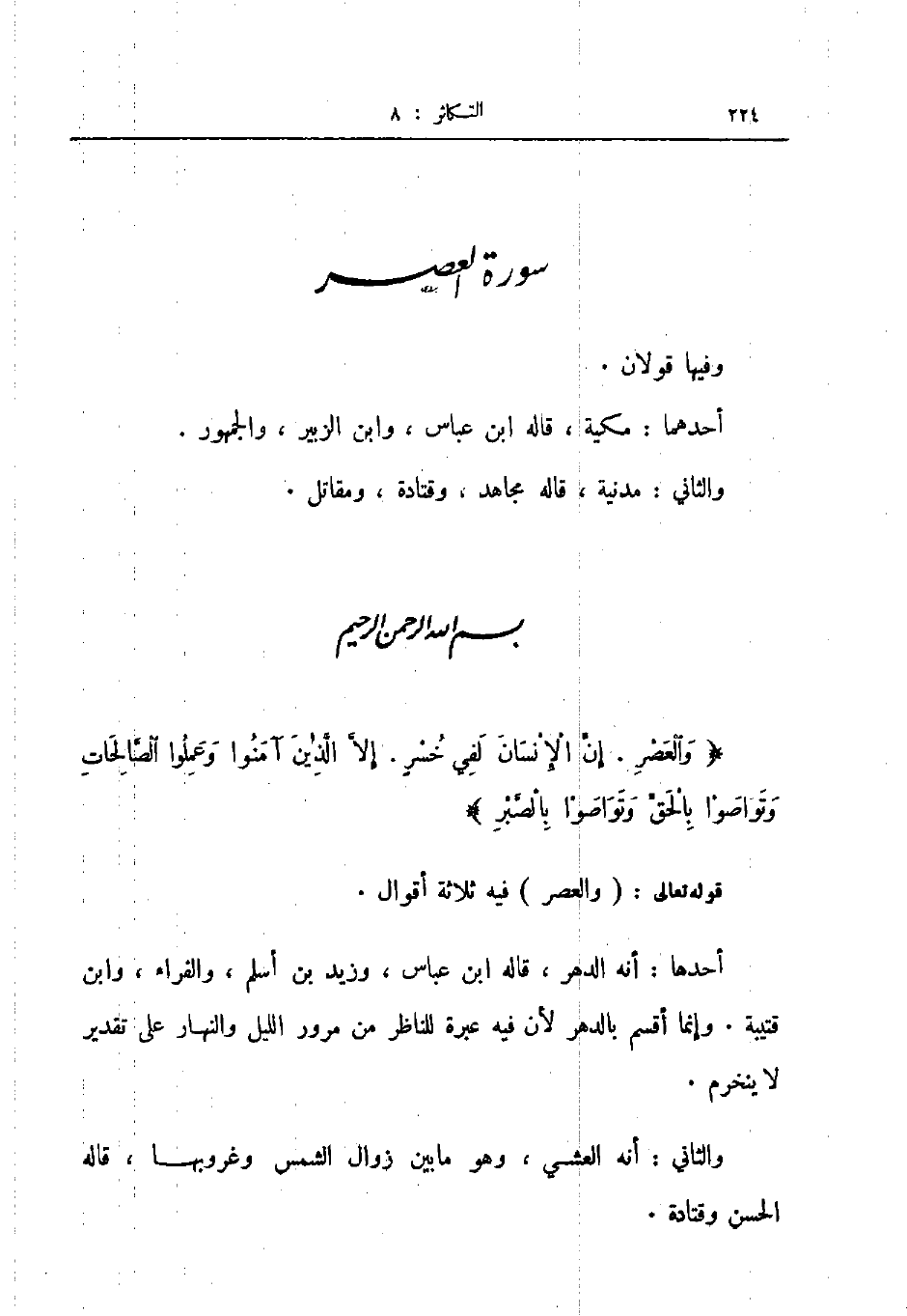 قوله تعالى { والعصر } فيه ثلاثة أقوال.